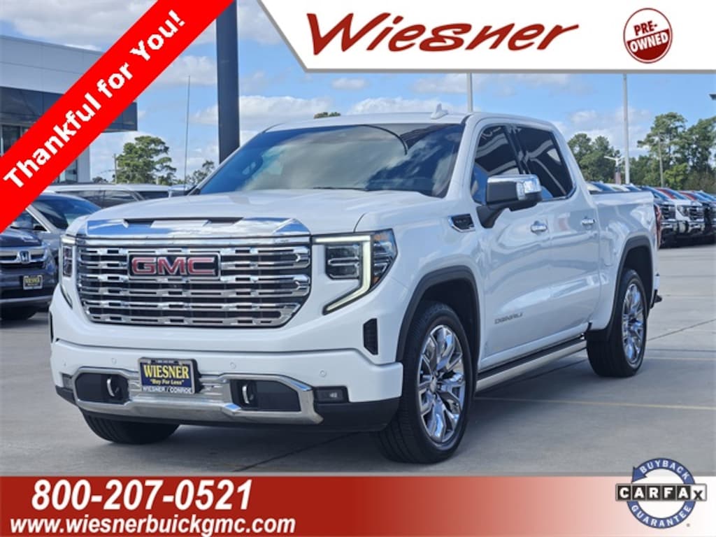 CARFAX One-Owner. Certified. Summit White 2023 GMC Sierra 1500 Denali Reserve 4WD 10-Speed Automatic EcoTec3 5.3L V8 10-Speed Automatic, 4WD, Jet Black Leather, 10-Way Power Driver Seat Adjuster w/Lumbar, 10-Way Power Passenger Seat Adjuster w/Lumbar, 120-Volt Bed Mounted Power Outlet, 120-Volt Instrument Panel Power Outlet, 2 Charge/Data USB Ports Inside Center Console, 2 Type-C Charge-Only Rear USB Ports, 2 USB Ports, 3.23 Rear Axle Ratio, 4-Wheel Disc Brakes, 7 Speakers, ABS brakes, Adaptive Cruise Control, Adaptive suspension, Air Conditioning, AM/FM radio, Apple CarPlay/Android Auto, Auto High-beam Headlights, Auto-dimming door mirrors, Auto-dimming Rear-View mirror, Auto-Locking Rear Differential, Automatic Emergency Braking, Automatic temperature control, Bed View Camera, Brake assist, Buckle to Drive, Chrome Recovery Hooks, Compass, Deep-Tinted Glass, Delay-off headlights, Denali Reserve Package, Driver Memory, Driver vanity mirror, Dual front impact airbags, Dual front side impact airbags, Electric Rear-Window Defogger, Electrical Steering Column Lock, Electronic Stability Control, Emergency communication system: OnStar and GMC connected services capable, Forge Perforated Leather Seat Trim, Forward Collision Alert, Front Bucket Seats, Front Center Armrest, Front dual zone A/C, Front fog lights, Front Pedestrian Braking, Front Rainsensing Wipers, Fully automatic headlights, GMC MultiPro Power Steps, HD Surround Vision, Heated 2nd Row Outboard Seats, Heated door mirrors, Heated Driver & Front Outboard Passenger Seating, Heated front seats, Heated rear seats, Heated steering wheel, Hill Descent Control, IntelliBeam Automatic High Beam On/Off, Low tire pressure warning, Memory seat, Multicolor 15" Diagonal Head-Up Display, Navigation System, Occupant sensing airbag, Panic alarm, Perimeter Lighting, Power Door Locks, Power door mirrors, Power driver seat, Power Front Passenger Windows w/Express Up/Down, Power Front Windows w/Driver Express Up/Down, Power passenger seat, Power Rake & Telescoping Steering Column, Power Rear Windows w/Express Down, Power Sliding Rear Window w/Rear Defogger, Power steering, Power Sunroof, Power windows, Premium audio system: GMC Infotainment System, Premium Bose 7-Speaker Sound System, Push Button Start, Radio data system, Radio: Premium GMC Infotainment Audio System, Rain sensing wipers, Rear Camera Mirror, Rear step bumper, Rear window defroster, Remote keyless entry, Remote Vehicle Starter System, Security system, SiriusXM w/360L, Speed control, Speed-sensing steering, Split folding rear seat, Spray-On Pickup Bed Liner w/Denali Logo, Steering Wheel Audio Controls, Steering wheel mounted audio controls, Technology Package, Traction control, Universal Home Remote, Variably intermittent wipers, Ventilated Driver & Front Passenger Seats, Ventilated front seats, Wheels: 22" x 9" Painted Aluminum, Wireless Phone Projection.