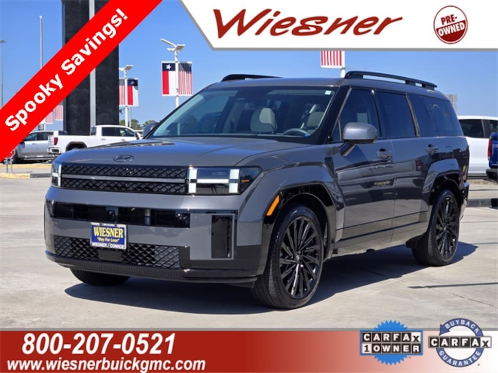 CARFAX One-Owner. Certified. Ecotronic Gray 2025 Hyundai Santa Fe Calligraphy FWD Shiftronic 2.5L I4 Gray Leather, 12 Speakers, 3rd row seats: bench, 4-Wheel Disc Brakes, ABS brakes, Air Conditioning, AM/FM radio: SiriusXM, Apple CarPlay & Android Auto, Auto High-beam Headlights, Auto-dimming Rear-View mirror, Automatic temperature control, Brake assist, Delay-off headlights, Driver vanity mirror, Dual front impact airbags, Dual front side impact airbags, Electronic Stability Control, Emergency communication system, Exterior Parking Camera Rear, First Aid Kit, Four wheel independent suspension, Front Bucket Seats, Front Center Armrest, Front dual zone A/C, Fully automatic headlights, Heads-Up Display, Heated & Ventilated Front Bucket Seats, Heated door mirrors, Heated front seats, Heated rear seats, Leather steering wheel, Low tire pressure warning, Memory seat, Navigation System, Occupant sensing airbag, Option Group 01, Outside temperature display, Panic alarm, Power door mirrors, Power driver seat, Power Liftgate, Power moonroof, Power passenger seat, Power steering, Power windows, Premium Nappa Leather Seat Trim, Radio: AM/FM/HD Bose Premium Audio System, Rain sensing wipers, Rear window defroster, Rear window wiper, Remote keyless entry, Security system, Speed control, Speed-sensing steering, Split folding rear seat, Steering wheel mounted audio controls, Traction control, Turn signal indicator mirrors, Variably intermittent wipers, Ventilated front seats, Wheels: 21" x 8.5J Unique Dark Finish Alloy.