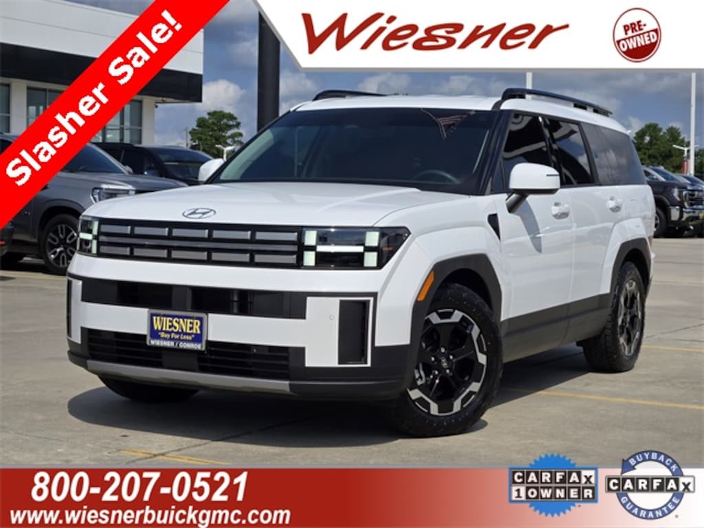 CARFAX One-Owner. Clean CARFAX. Certified. Serenity White 2025 Hyundai Santa Fe SEL AWD Shiftronic 2.5L I4 AWD, Black Artificial Leather, 18" x 7.5J Alloy Wheels, 3rd row seats: bench, 4-Wheel Disc Brakes, 6 Speakers, ABS brakes, Air Conditioning, AM/FM radio: SiriusXM, Apple CarPlay & Android Auto, Auto High-beam Headlights, Automatic temperature control, Brake assist, Carpeted Floor Mats, Delay-off headlights, Dual front impact airbags, Dual front side impact airbags, Electronic Stability Control, Emergency communication system, Exterior Parking Camera Rear, Four wheel independent suspension, Front Bucket Seats, Front Center Armrest, Front dual zone A/C, Fully automatic headlights, H-Tex Leatherette Seat Trim, Heated door mirrors, Heated Front Bucket Seats, Heated front seats, Low tire pressure warning, Occupant sensing airbag, Option Group 01, Panic alarm, Power door mirrors, Power driver seat, Power Liftgate, Power steering, Power windows, Radio: AM/FM/HD Display Audio, Rear window defroster, Rear window wiper, Remote keyless entry, Security system, Speed control, Speed-sensing steering, Split folding rear seat, Steering wheel mounted audio controls, Traction control, Turn signal indicator mirrors, Variably intermittent wipers.