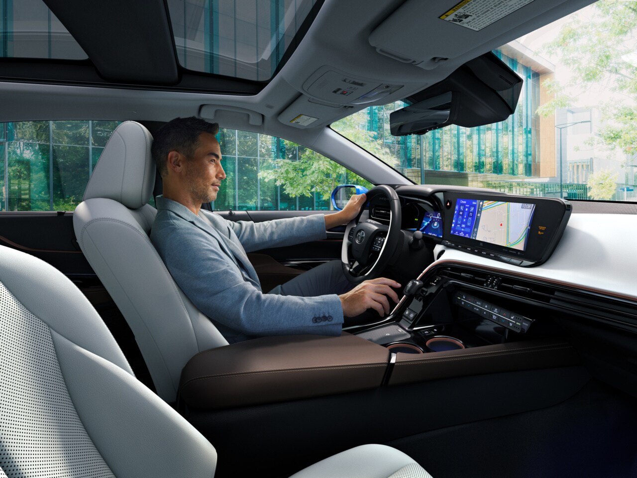 The new Toyota RAV4's standard infotainment screen is just 8 inches long. A curved, dual-screen system is not available in the RAV4.