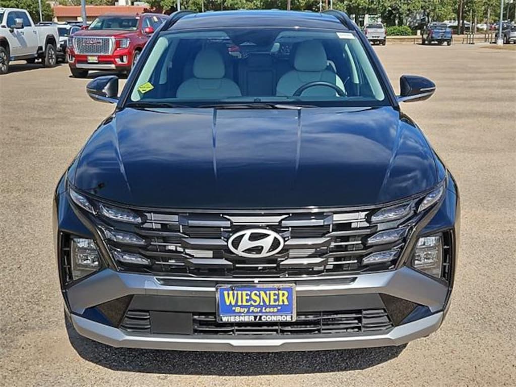 This 2025 Hyundai Tucson SEL Convenience in Phantom Black comes with the following features: 2.5L I4 DGI DOHC 16V LEV3-SULEV30 187hp 8-Speed Automatic with SHIFTRONIC FWD Option Group 01, 18" Alloy Wheels, 4-Wheel Disc Brakes, 6 Speakers, ABS brakes, Air Conditioning, Alloy wheels, AM/FM radio: SiriusXM, Apple CarPlay & Android Auto, Auto High-beam Headlights, Auto-dimming Rear-View mirror, Automatic temperature control, Brake assist, Bumpers: body-color, Cargo Blocks, Cargo Net, Carpeted Floor Mats, Cross Rails, Delay-off headlights, Driver door bin, Driver vanity mirror, Dual front impact airbags, Dual front side impact airbags, Electronic Stability Control, Emergency communication system: Bluelink+, First Aid Kit, Four wheel independent suspension, Front anti-roll bar, Front Bucket Seats, Front Center Armrest, Front dual zone A/C, Front reading lights, Fully automatic headlights, H-Tex Seat Trim, Heated door mirrors, Heated Front Bucket Seats, Heated front seats, Illuminated entry, Leather steering wheel, Low tire pressure warning, Navigation System, Occupant sensing airbag, Outside temperature display, Overhead airbag, Overhead console, Panic alarm, Passenger door bin, Passenger vanity mirror, Power door mirrors, Power driver seat, Power Liftgate, Power moonroof, Power steering, Power windows, Radio data system, Radio: AM/FM/HD Audio System, Rear anti-roll bar, Rear reading lights, Rear seat center armrest, Rear side impact airbag, Rear window defroster, Rear window wiper, Remote keyless entry, Security system, Speed control, Split folding rear seat, Spoiler, Steering wheel mounted audio controls, Tachometer, Telescoping steering wheel, Tilt steering wheel, Traction control, Trip computer, Turn signal indicator mirrors, and Variably intermittent wipers. 25/33 City/Highway MPG