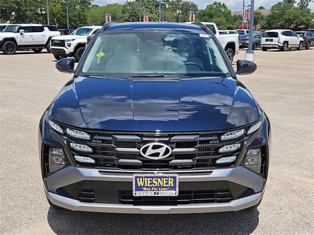 This 2025 Hyundai Tucson Hybrid Blue in Deep Sea comes with the following features: 1.6L I4 DGI Hybrid Turbocharged DOHC 16V LEV3-SULEV30 6-Speed Automatic AWD 1.6L I4 DGI Hybrid Turbocharged DOHC 16V LEV3-SULEV30 Option Group 01, 1.6L I4 DGI Hybrid Turbocharged DOHC 16V LEV3-SULEV30, 17" Alloy Wheels, 4-Wheel Disc Brakes, 6 Speakers, ABS brakes, Air Conditioning, Alloy wheels, AM/FM radio: SiriusXM, Apple CarPlay & Android Auto, Auto High-beam Headlights, Automatic temperature control, Brake assist, Bumpers: body-color, Cargo Tray, Carpeted Floor Mats, Delay-off headlights, Driver door bin, Driver vanity mirror, Dual front impact airbags, Dual front side impact airbags, Electronic Stability Control, Emergency communication system: Bluelink+, First Aid Kit, Four wheel independent suspension, Front anti-roll bar, Front Bucket Seats, Front Center Armrest, Front dual zone A/C, Front reading lights, Fully automatic headlights, Heated door mirrors, Heated Front Bucket Seats, Heated front seats, Illuminated entry, Low tire pressure warning, Occupant sensing airbag, Outside temperature display, Overhead airbag, Overhead console, Panic alarm, Passenger door bin, Passenger vanity mirror, Power door mirrors, Power driver seat, Power Liftgate, Power steering, Power windows, Radio data system, Radio: AM/FM/HD Audio System, Rear anti-roll bar, Rear reading lights, Rear seat center armrest, Rear side impact airbag, Rear window defroster, Rear window wiper, Remote keyless entry, Roadside Assistance Kit, Security system, Speed control, Split folding rear seat, Spoiler, Stain & Odor Resistant Cloth Seat Trim, Steering wheel mounted audio controls, Tachometer, Telescoping steering wheel, Tilt steering wheel, Traction control, Trip computer, Variably intermittent wipers, and Wheel Locks. 38/38 City/Highway MPG Price includes: $2000 - Hyundai HMF Dealer Choice : $2000 discount and 5.99% APR for 24 months. $44.32 per $1000 financed. Available to well qualified buyers who finance through Hyundai Motor Finance. H704. Exp. 11/03/2025