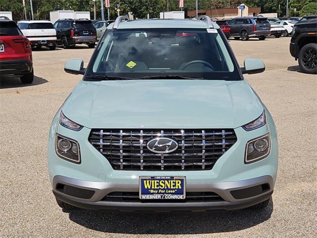This 2025 Hyundai Venue SEL in Mirage Green comes with the following features: I4 CVT FWD Option Group 01, 4-Wheel Disc Brakes, 6 Speakers, 6.5J x 17" Alloy Wheels, ABS brakes, Air Conditioning, All-Season Fitted Liners, Alloy wheels, AM/FM radio, Apple CarPlay & Android Auto, Auto High-beam Headlights, Automatic temperature control, Brake assist, Bumpers: body-color, Cargo Net, Carpeted Floor Mats, Cloth Seat Trim, Delay-off headlights, Driver door bin, Driver vanity mirror, Dual front impact airbags, Dual front side impact airbags, Electronic Stability Control, Front anti-roll bar, Front Bucket Seats, Front Center Armrest, Front reading lights, Front wheel independent suspension, Fully automatic headlights, Illuminated entry, Leather Shift Knob, Leather steering wheel, Low tire pressure warning, Occupant sensing airbag, Outside temperature display, Overhead airbag, Overhead console, Panic alarm, Passenger door bin, Passenger vanity mirror, Power door mirrors, Power moonroof, Power steering, Power windows, Radio: AM/FM/HD Display Audio, Rear Seat Cup Holder, Rear window defroster, Rear window wiper, Remote keyless entry, Reversible Cargo Tray, Security system, Speed control, Speed-sensing steering, Split folding rear seat, Spoiler, Steering wheel mounted audio controls, Tachometer, Telescoping steering wheel, Tilt steering wheel, Traction control, Trip computer, and Variably intermittent wipers. 29/32 City/Highway MPG Price includes: $250 - Hyundai HMF Dealer Choice : $250 discount and 5.99% APR for 24 months. $44.32 per $1000 financed. Available to well qualified buyers who finance through Hyundai Motor Finance. H704. Exp. 11/03/2025
