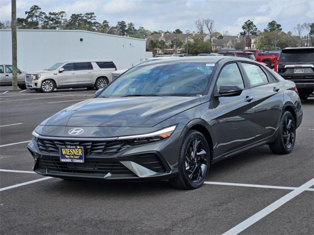 This 2026 Hyundai Elantra SEL Sport in Amazon Gray comes with the following features: I4 CVT FWD Option Group 01, 4-Wheel Disc Brakes, 6 Speakers, ABS brakes, Air Conditioning, All-Season Fitted Liners, Alloy wheels, AM/FM radio, Apple CarPlay & Android Auto, Auto High-beam Headlights, Automatic temperature control, Brake assist, Bumpers: body-color, Cargo Tray, Carpeted Floor Mats, Delay-off headlights, Driver door bin, Driver vanity mirror, Dual front impact airbags, Dual front side impact airbags, Electronic Stability Control, Exterior Parking Camera Rear, First Aid Kit, Front anti-roll bar, Front Bucket Seats, Front Center Armrest, Front dual zone A/C, Front reading lights, Front wheel independent suspension, Fully automatic headlights, Illuminated entry, Low tire pressure warning, Occupant sensing airbag, Outside temperature display, Overhead airbag, Overhead console, Panic alarm, Passenger door bin, Passenger vanity mirror, Power door mirrors, Power steering, Power windows, Premium Cloth Seat Trim, Radio: AM/FM/HD Display Audio, Rear side impact airbag, Rear window defroster, Remote keyless entry, Security system, Speed control, Speed-sensing steering, Spoiler, Steering wheel mounted audio controls, Tachometer, Telescoping steering wheel, Tilt steering wheel, Traction control, Trip computer, Variably intermittent wipers, and Wheels: 17" x 7.0J Alloy Gloss Black w/Dark Finish. 30/39 City/Highway MPG Price includes: $2000 - Hyundai HMF Dealer Choice : $2000 discount and 5.39% APR for 24 months. $44.05 per $1000 financed. Available to well qualified buyers who finance through Hyundai Motor Finance. H704. Exp. 03/31/2026