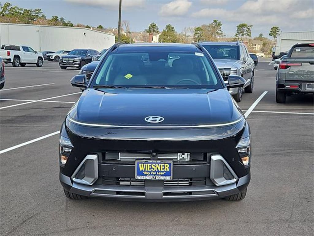 This 2026 Hyundai Kona Limited in Abyss Black Pearl comes with the following features: I4 8-Speed Automatic AWD Option Group 01, 4-Wheel Disc Brakes, 8 Speakers, ABS brakes, Air Conditioning, Alloy wheels, AM/FM radio: SiriusXM, Apple CarPlay & Android Auto, Auto High-beam Headlights, Auto-dimming Rear-View mirror, Automatic temperature control, Brake assist, Bumpers: body-color, Cargo Net, Cargo Organizer, Cargo Tray, Carpeted Floor Mats, Delay-off headlights, Driver door bin, Driver vanity mirror, Dual front impact airbags, Dual front side impact airbags, Electronic Stability Control, Emergency communication system: None, First Aid Kit, Four wheel independent suspension, Front anti-roll bar, Front Bucket Seats, Front Center Armrest, Front dual zone A/C, Front reading lights, Fully automatic headlights, H-Tex Seat Trim, Heated and Ventilated Front Bucket Seats, Heated door mirrors, Heated front seats, Heated steering wheel, Illuminated entry, Leather steering wheel, Low tire pressure warning, Mud Guards, Navigation System, Occupant sensing airbag, Outside temperature display, Overhead airbag, Panic alarm, Passenger door bin, Passenger vanity mirror, Power door mirrors, Power driver seat, Power Liftgate, Power moonroof, Power steering, Power windows, Radio: AM/FM/SiriusXM/HD Audio System, Rear anti-roll bar, Rear seat center armrest, Rear window defroster, Rear window wiper, Remote keyless entry, Security system, Speed control, Speed-sensing steering, Split folding rear seat, Spoiler, Steering wheel mounted audio controls, Tachometer, Telescoping steering wheel, Tilt steering wheel, Traction control, Trip computer, Turn signal indicator mirrors, Variably intermittent wipers, Ventilated front seats, and Wheels: 19" x 7.5J Silver/Black Alloy. 25/28 City/Highway MPG Price includes: $1000 - Hyundai HMF Dealer Choice : $1000 discount and 5.39% APR for 24 months. $44.05 per $1000 financed. Available to well qualified buyers who finance through Hyundai Motor Finance. H704. Exp. 03/02/2026