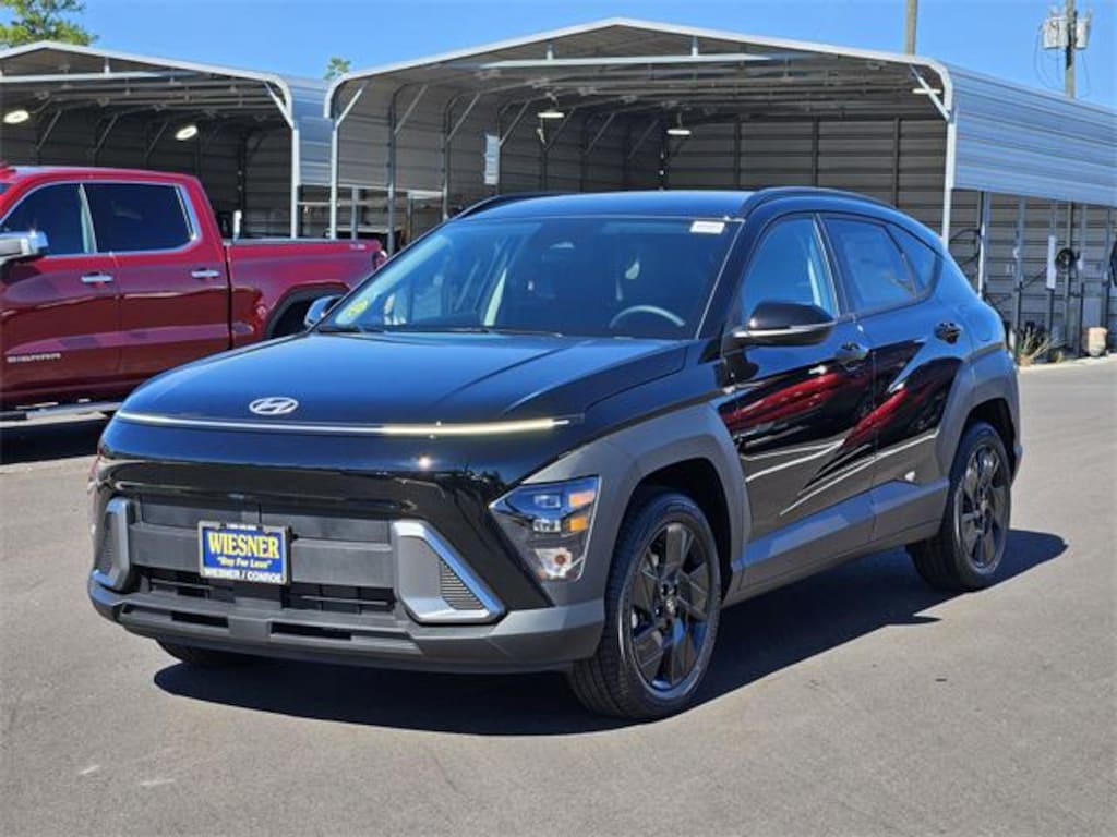 This 2026 Hyundai Kona SEL Sport in Abyss Black Pearl comes with the following features: 2.0L I4 DOHC 16V CVT FWD Option Group 01, 4-Wheel Disc Brakes, 6 Speakers, ABS brakes, Air Conditioning, Alloy wheels, AM/FM radio: SiriusXM, Apple CarPlay & Android Auto, Auto High-beam Headlights, Automatic temperature control, Brake assist, Bumpers: body-color, Cargo Net, Carpeted Floor Mats, Cloth Seat Trim, Cross Rails, Delay-off headlights, Driver door bin, Driver vanity mirror, Dual front impact airbags, Dual front side impact airbags, Electronic Stability Control, Emergency communication system: Bluelink+, Exterior Parking Camera Rear, First Aid Kit, Front anti-roll bar, Front Bucket Seats, Front Center Armrest, Front dual zone A/C, Front reading lights, Front wheel independent suspension, Fully automatic headlights, Heated door mirrors, Heated Front Bucket Seats, Heated front seats, Illuminated entry, Leather steering wheel, Low tire pressure warning, Occupant sensing airbag, Outside temperature display, Overhead airbag, Panic alarm, Passenger door bin, Passenger vanity mirror, Power door mirrors, Power steering, Power windows, Radio: AM/FM/SiriusXM/HD Radio Audio System, Rear seat center armrest, Rear window defroster, Rear window wiper, Remote keyless entry, Security system, Speed control, Speed-sensing steering, Split folding rear seat, Spoiler, Steering wheel mounted audio controls, Tachometer, Telescoping steering wheel, Tilt steering wheel, Traction control, Trip computer, Turn signal indicator mirrors, Variably intermittent wipers, and Wheels: 18" x 7.0J Black Alloy. 28/35 City/Highway MPG Price includes: $1750 - Hyundai HMF Dealer Choice : $1750 discount and 5.49% APR for 24 months. $44.09 per $1000 financed. Available to well qualified buyers who finance through Hyundai Motor Finance. H704. Exp. 12/01/2025