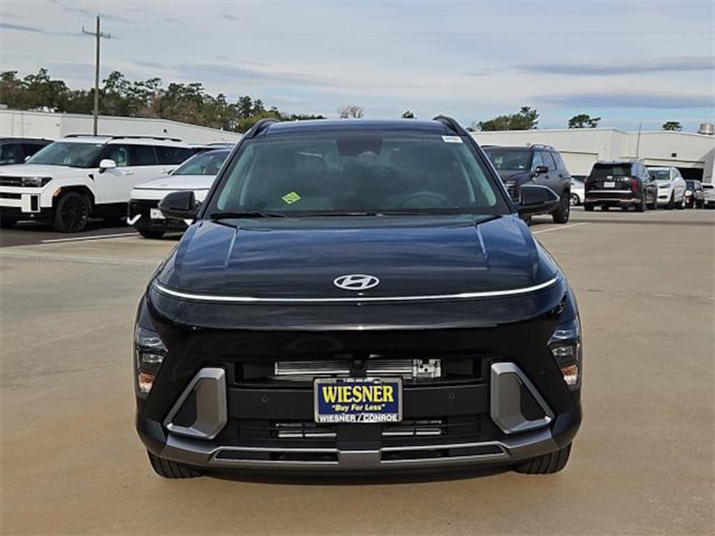 This 2026 Hyundai Kona Limited in Abyss Black Pearl comes with the following features: I4 8-Speed Automatic AWD Option Group 01, 4-Wheel Disc Brakes, 8 Speakers, ABS brakes, Air Conditioning, All-Weather Fitted Liners, Alloy wheels, AM/FM radio: SiriusXM, Apple CarPlay & Android Auto, Auto High-beam Headlights, Auto-dimming Rear-View mirror, Automatic temperature control, Brake assist, Bumpers: body-color, Cargo Net, Cargo Tray, Carpeted Floor Mats, Delay-off headlights, Driver door bin, Driver vanity mirror, Dual front impact airbags, Dual front side impact airbags, Electronic Stability Control, Emergency communication system: None, First Aid Kit, Four wheel independent suspension, Front anti-roll bar, Front Bucket Seats, Front Center Armrest, Front dual zone A/C, Front reading lights, Fully automatic headlights, H-Tex Seat Trim, Heated and Ventilated Front Bucket Seats, Heated door mirrors, Heated front seats, Heated steering wheel, Illuminated entry, Leather steering wheel, Low tire pressure warning, Navigation System, Occupant sensing airbag, Outside temperature display, Overhead airbag, Panic alarm, Passenger door bin, Passenger vanity mirror, Power door mirrors, Power driver seat, Power Liftgate, Power moonroof, Power steering, Power windows, Radio: AM/FM/SiriusXM/HD Audio System, Rear anti-roll bar, Rear seat center armrest, Rear window defroster, Rear window wiper, Remote keyless entry, Security system, Speed control, Speed-sensing steering, Split folding rear seat, Spoiler, Steering wheel mounted audio controls, Tachometer, Telescoping steering wheel, Tilt steering wheel, Traction control, Trip computer, Turn signal indicator mirrors, Variably intermittent wipers, Ventilated front seats, and Wheels: 19" x 7.5J Silver/Black Alloy. 25/28 City/Highway MPG Price includes: $750 - Hyundai HMF Dealer Choice : $750 discount and 5.39% APR for 24 months. $44.05 per $1000 financed. Available to well qualified buyers who finance through Hyundai Motor Finance. H704. Exp. 02/02/2026