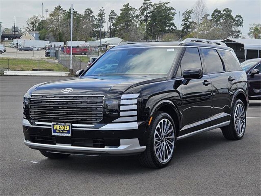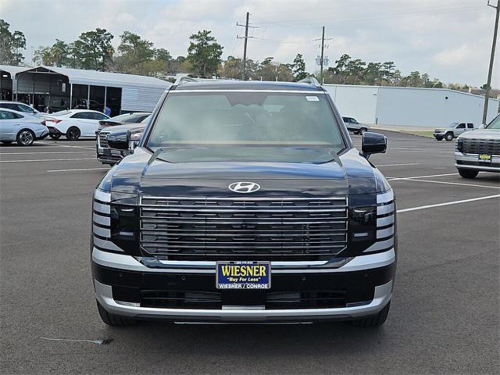 This 2026 Hyundai Palisade Calligraphy in Abyss Black Pearl comes with the following features: V6 8-Speed Automatic FWD Option Group 01, 14 Speakers, 3rd row seats: split-bench, 4-Wheel Disc Brakes, ABS brakes, Air Conditioning, Alloy wheels, AM/FM radio: SiriusXM, Apple CarPlay & Android Auto, Audio memory, Auto High-beam Headlights, Auto-dimming door mirrors, Auto-dimming Rear-View mirror, Auto-leveling suspension, Automatic temperature control, Brake assist, Bumpers: body-color, Cargo Tray, Carpeted Floor Mats, Compass, Delay-off headlights, Driver door bin, Driver vanity mirror, Dual front impact airbags, Dual front side impact airbags, Electronic Stability Control, Emergency communication system: None, Exterior Parking Camera Rear, First Aid Kit, Four wheel independent suspension, Front anti-roll bar, Front Bucket Seats, Front Center Armrest, Front dual zone A/C, Front reading lights, Fully automatic headlights, Garage door transmitter: HomeLink, Genuine wood console insert, Genuine wood dashboard insert, Heads-Up Display, Heated and Ventilated Front Bucket Seats, Heated door mirrors, Heated front seats, Heated rear seats, Heated steering wheel, HVAC memory, Illuminated entry, Knee airbag, Leather steering wheel, Low tire pressure warning, Memory seat, Navigation System, Occupant sensing airbag, Outside temperature display, Overhead airbag, Overhead console, Panic alarm, Passenger door bin, Passenger vanity mirror, Power door mirrors, Power driver seat, Power Liftgate, Power moonroof, Power passenger seat, Power steering, Power windows, Premium Nappa Leather Seat Trim, Radio data system, Radio: Infotainment Navigation System, Rain sensing wipers, Rear air conditioning, Rear anti-roll bar, Rear audio controls, Rear reading lights, Rear side impact airbag, Rear window defroster, Rear window wiper, Reclining 3rd row seat, Remote keyless entry, Security system, Speed control, Split folding rear seat, Spoiler, Steering wheel mounted audio controls, Tachometer, Telescoping steering wheel, Tilt steering wheel, Traction control, Trip computer, Turn signal indicator mirrors, Underbody Protection Plate, Variably intermittent wipers, Ventilated front seats, Ventilated rear seats, and Wheels: 21" x 8.5J Alloy. Price includes: $1000 - Hyundai HMF Dealer Choice : $1000 discount and 5.39% APR for 24 months. $44.05 per $1000 financed. Available to well qualified buyers who finance through Hyundai Motor Finance. H704. Exp. 03/31/2026 $2000 - Sales Event Cash. Exp. 03/31/2026