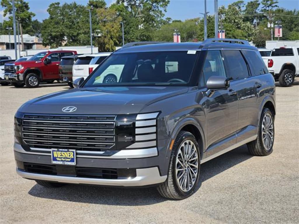 This 2026 Hyundai Palisade Calligraphy in Ecotronic Gray Pearl comes with the following features: V6 8-Speed Automatic AWD Option Group 01, 14 Speakers, 3rd row seats: split-bench, 4-Wheel Disc Brakes, ABS brakes, Air Conditioning, Alloy wheels, AM/FM radio: SiriusXM, Apple CarPlay & Android Auto, Audio memory, Auto High-beam Headlights, Auto-dimming door mirrors, Auto-dimming Rear-View mirror, Auto-leveling suspension, Automatic temperature control, Brake assist, Bumpers: body-color, Cargo Cover, Cargo Net, Cargo Tray, Carpeted Floor Mats, Compass, Delay-off headlights, Driver door bin, Driver vanity mirror, Dual front impact airbags, Dual front side impact airbags, Electronic Stability Control, Emergency communication system: Bluelink+, Exterior Parking Camera Rear, Four wheel independent suspension, Front anti-roll bar, Front Bucket Seats, Front Center Armrest, Front dual zone A/C, Front reading lights, Fully automatic headlights, Garage door transmitter: HomeLink, Genuine wood console insert, Genuine wood dashboard insert, Heads-Up Display, Heated & Ventilated Front Bucket Seats, Heated door mirrors, Heated front seats, Heated rear seats, Heated steering wheel, HVAC memory, Illuminated entry, Knee airbag, Leather steering wheel, Low tire pressure warning, Memory seat, Navigation System, Occupant sensing airbag, Outside temperature display, Overhead airbag, Overhead console, Panic alarm, Passenger door bin, Passenger vanity mirror, Power door mirrors, Power driver seat, Power Liftgate, Power moonroof, Power passenger seat, Power steering, Power windows, Premium Nappa Leather Seat Trim, Radio data system, Radio: Infotainment Navigation System, Rain sensing wipers, Rear air conditioning, Rear anti-roll bar, Rear audio controls, Rear reading lights, Rear side impact airbag, Rear window defroster, Rear window wiper, Reclining 3rd row seat, Remote keyless entry, Security system, Speed control, Split folding rear seat, Spoiler, Steering wheel mounted audio controls, Tachometer, Telescoping steering wheel, Tilt steering wheel, Traction control, Trip computer, Turn signal indicator mirrors, Variably intermittent wipers, Ventilated front seats, Ventilated rear seats, and Wheels: 21" x 8.5J Alloy. Price includes: $1250 - Hyundai HMF Dealer Choice : $1250 discount and 5.99% APR for 24 months. $44.32 per $1000 financed. Available to well qualified buyers who finance through Hyundai Motor Finance. H704. Exp. 11/03/2025