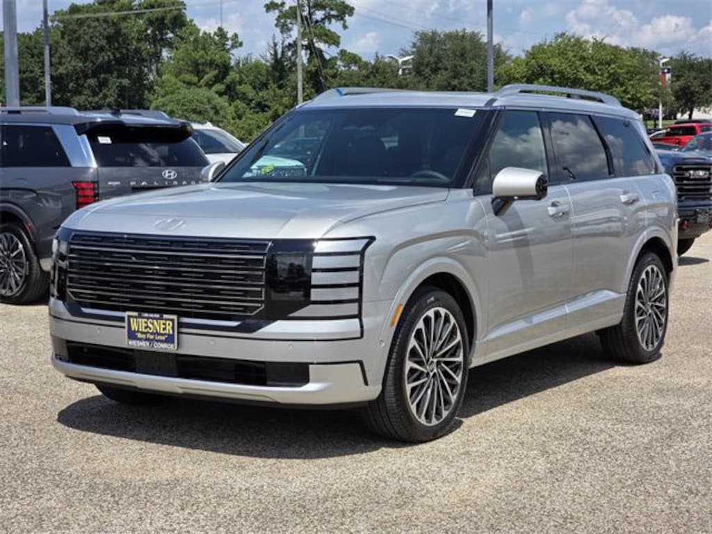 This 2026 Hyundai Palisade Calligraphy in Typhoon Silver Metallic comes with the following features: V6 8-Speed Automatic FWD Option Group 01, 14 Speakers, 3rd row seats: split-bench, 4-Wheel Disc Brakes, ABS brakes, Air Conditioning, Alloy wheels, AM/FM radio: SiriusXM, Apple CarPlay & Android Auto, Audio memory, Auto High-beam Headlights, Auto-dimming door mirrors, Auto-dimming Rear-View mirror, Auto-leveling suspension, Automatic temperature control, Brake assist, Bumpers: body-color, Cargo Net, Cargo Organizer, Cargo Tray, Carpeted Floor Mats, Compass, Delay-off headlights, Driver door bin, Driver vanity mirror, Dual front impact airbags, Dual front side impact airbags, Electronic Stability Control, Emergency communication system: Bluelink+, Exterior Parking Camera Rear, First Aid Kit, Four wheel independent suspension, Front anti-roll bar, Front Bucket Seats, Front Center Armrest, Front dual zone A/C, Front reading lights, Fully automatic headlights, Garage door transmitter: HomeLink, Genuine wood console insert, Genuine wood dashboard insert, Heads-Up Display, Heated & Ventilated Front Bucket Seats, Heated door mirrors, Heated front seats, Heated rear seats, Heated steering wheel, HVAC memory, Illuminated entry, Knee airbag, Leather steering wheel, Low tire pressure warning, Memory seat, Navigation System, Occupant sensing airbag, Outside temperature display, Overhead airbag, Overhead console, Panic alarm, Passenger door bin, Passenger vanity mirror, Power door mirrors, Power driver seat, Power Liftgate, Power moonroof, Power passenger seat, Power steering, Power windows, Premium Nappa Leather Seat Trim, Radio data system, Radio: Infotainment Navigation System, Rain sensing wipers, Rear air conditioning, Rear anti-roll bar, Rear audio controls, Rear reading lights, Rear side impact airbag, Rear window defroster, Rear window wiper, Reclining 3rd row seat, Remote keyless entry, Security system, Speed control, Split folding rear seat, Spoiler, Steering wheel mounted audio controls, Tachometer, Telescoping steering wheel, Tilt steering wheel, Traction control, Trip computer, Turn signal indicator mirrors, Variably intermittent wipers, Ventilated front seats, Ventilated rear seats, and Wheels: 21" x 8.5J Alloy. Price includes: $1250 - Hyundai HMF Dealer Choice : $1250 discount and 5.99% APR for 24 months. $44.32 per $1000 financed. Available to well qualified buyers who finance through Hyundai Motor Finance. H704. Exp. 11/03/2025