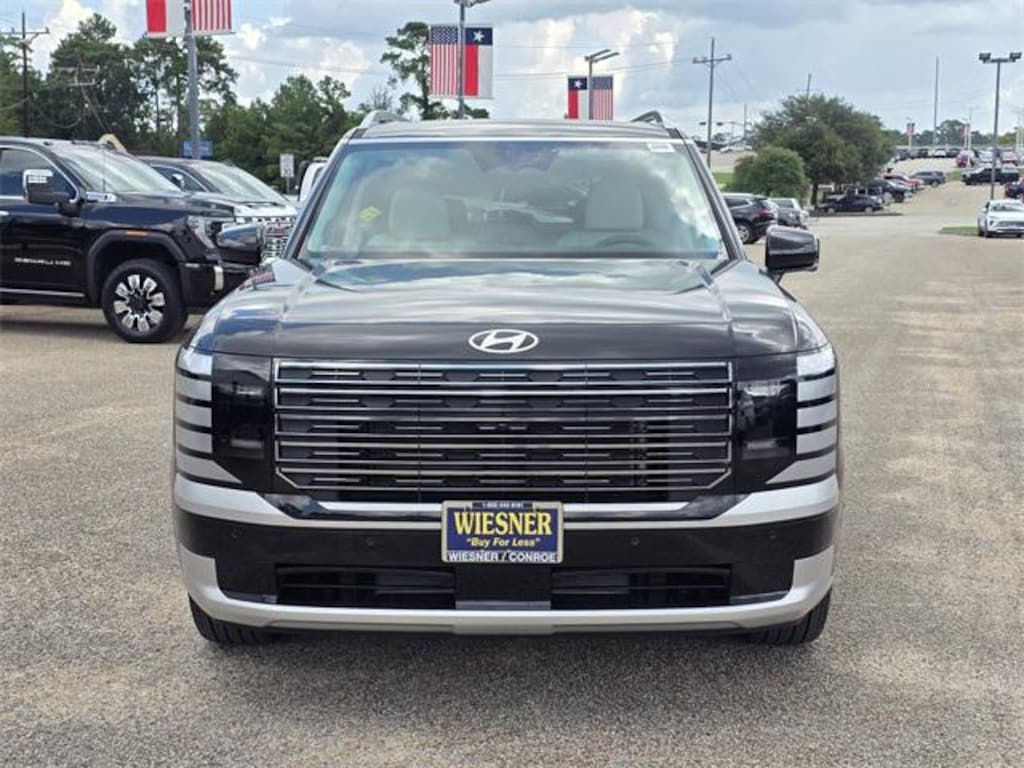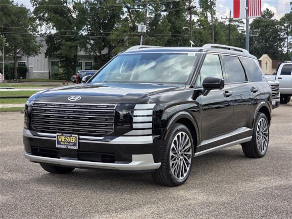 This 2026 Hyundai Palisade Calligraphy in Abyss Black Pearl comes with the following features: V6 8-Speed Automatic FWD Option Group 01, 14 Speakers, 3rd row seats: split-bench, 4-Wheel Disc Brakes, ABS brakes, Air Conditioning, Alloy wheels, AM/FM radio: SiriusXM, Apple CarPlay & Android Auto, Audio memory, Auto High-beam Headlights, Auto-dimming door mirrors, Auto-dimming Rear-View mirror, Auto-leveling suspension, Automatic temperature control, Brake assist, Bumpers: body-color, Cargo Net, Cargo Organizer, Cargo Tray, Carpeted Floor Mats, Compass, Delay-off headlights, Driver door bin, Driver vanity mirror, Dual front impact airbags, Dual front side impact airbags, Electronic Stability Control, Emergency communication system: Bluelink+, Exterior Parking Camera Rear, First Aid Kit, Four wheel independent suspension, Front anti-roll bar, Front Bucket Seats, Front Center Armrest, Front dual zone A/C, Front reading lights, Fully automatic headlights, Garage door transmitter: HomeLink, Genuine wood console insert, Genuine wood dashboard insert, Heads-Up Display, Heated & Ventilated Front Bucket Seats, Heated door mirrors, Heated front seats, Heated rear seats, Heated steering wheel, HVAC memory, Illuminated entry, Knee airbag, Leather steering wheel, Low tire pressure warning, Memory seat, Navigation System, Occupant sensing airbag, Outside temperature display, Overhead airbag, Overhead console, Panic alarm, Passenger door bin, Passenger vanity mirror, Power door mirrors, Power driver seat, Power Liftgate, Power moonroof, Power passenger seat, Power steering, Power windows, Premium Nappa Leather Seat Trim, Radio data system, Radio: Infotainment Navigation System, Rain sensing wipers, Rear air conditioning, Rear anti-roll bar, Rear audio controls, Rear reading lights, Rear side impact airbag, Rear window defroster, Rear window wiper, Reclining 3rd row seat, Remote keyless entry, Security system, Speed control, Split folding rear seat, Spoiler, Steering wheel mounted audio controls, Tachometer, Telescoping steering wheel, Tilt steering wheel, Traction control, Trip computer, Turn signal indicator mirrors, Variably intermittent wipers, Ventilated front seats, Ventilated rear seats, and Wheels: 21" x 8.5J Alloy. Price includes: $1250 - Hyundai HMF Dealer Choice : $1250 discount and 5.99% APR for 24 months. $44.32 per $1000 financed. Available to well qualified buyers who finance through Hyundai Motor Finance. H704. Exp. 11/03/2025