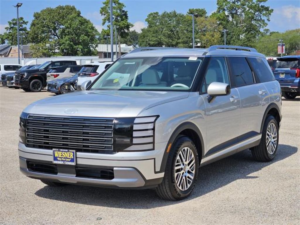 This 2026 Hyundai Palisade SEL in Typhoon Silver Metallic comes with the following features: V6 8-Speed Automatic FWD Option Group 01, 3rd row seats: split-bench, 4-Wheel Disc Brakes, 8 Speakers, ABS brakes, Air Conditioning, Alloy wheels, AM/FM radio: SiriusXM, Apple CarPlay & Android Auto, Auto High-beam Headlights, Auto-dimming Rear-View mirror, Auto-leveling suspension, Automatic temperature control, Brake assist, Bumpers: body-color, Cargo Cover, Cargo Tray, Carpeted Floor Mats, Compass, Delay-off headlights, Driver door bin, Driver vanity mirror, Dual front impact airbags, Dual front side impact airbags, Electronic Stability Control, Emergency communication system: Bluelink+, Exterior Parking Camera Rear, First Aid Kit, Four wheel independent suspension, Front anti-roll bar, Front Bucket Seats, Front Center Armrest, Front dual zone A/C, Front reading lights, Fully automatic headlights, H-Tex Leatherette Seat Trim, Heated door mirrors, Heated Front Bucket Seats, Heated front seats, Illuminated entry, Knee airbag, Leather steering wheel, Low tire pressure warning, Navigation System, Occupant sensing airbag, Outside temperature display, Overhead airbag, Overhead console, Panic alarm, Passenger door bin, Passenger vanity mirror, Power door mirrors, Power driver seat, Power Liftgate, Power moonroof, Power passenger seat, Power steering, Power windows, Radio data system, Radio: Infotainment Navigation System, Rear air conditioning, Rear anti-roll bar, Rear audio controls, Rear reading lights, Rear side impact airbag, Rear window defroster, Rear window wiper, Reclining 3rd row seat, Remote keyless entry, Security system, Speed control, Split folding rear seat, Spoiler, Steering wheel mounted audio controls, Tachometer, Telescoping steering wheel, Tilt steering wheel, Traction control, Trip computer, Turn signal indicator mirrors, Variably intermittent wipers, and Wheels: 18" x 8.0J Alloy. Price includes: $1250 - Hyundai HMF Dealer Choice : $1250 discount and 5.99% APR for 24 months. $44.32 per $1000 financed. Available to well qualified buyers who finance through Hyundai Motor Finance. H704. Exp. 11/03/2025