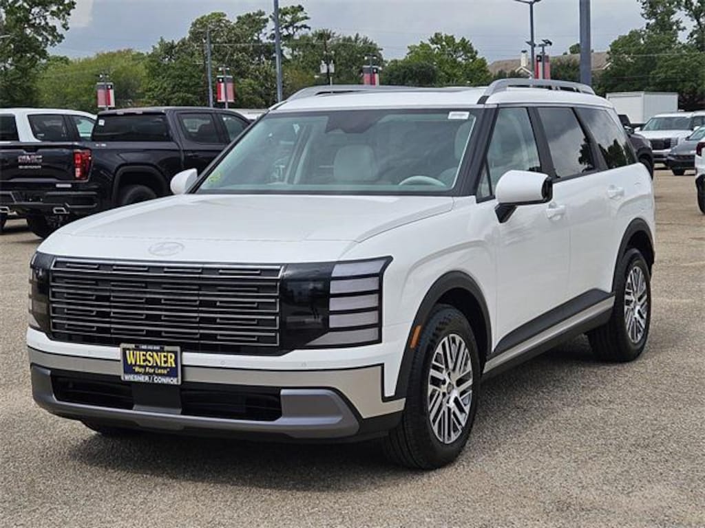 This 2026 Hyundai Palisade SEL in Creamy White Pearl comes with the following features: V6 8-Speed Automatic FWD Option Group 01, 3rd row seats: split-bench, 4-Wheel Disc Brakes, 8 Speakers, ABS brakes, Air Conditioning, Alloy wheels, AM/FM radio: SiriusXM, Apple CarPlay & Android Auto, Auto High-beam Headlights, Auto-dimming Rear-View mirror, Auto-leveling suspension, Automatic temperature control, Brake assist, Bumpers: body-color, Cargo Cover, Cargo Net, Cargo Tray, Carpeted Floor Mats, Compass, Delay-off headlights, Driver door bin, Driver vanity mirror, Dual front impact airbags, Dual front side impact airbags, Electronic Stability Control, Emergency communication system: Bluelink+, Exterior Parking Camera Rear, First Aid Kit, Four wheel independent suspension, Front anti-roll bar, Front Bucket Seats, Front Center Armrest, Front dual zone A/C, Front reading lights, Fully automatic headlights, H-Tex Leatherette Seat Trim, Heated door mirrors, Heated Front Bucket Seats, Heated front seats, Illuminated entry, Knee airbag, Leather steering wheel, Low tire pressure warning, Navigation System, Occupant sensing airbag, Outside temperature display, Overhead airbag, Overhead console, Panic alarm, Passenger door bin, Passenger vanity mirror, Power door mirrors, Power driver seat, Power Liftgate, Power moonroof, Power passenger seat, Power steering, Power windows, Radio data system, Radio: Infotainment Navigation System, Rear air conditioning, Rear anti-roll bar, Rear audio controls, Rear reading lights, Rear side impact airbag, Rear window defroster, Rear window wiper, Reclining 3rd row seat, Remote keyless entry, Roadside Assistance Kit, Security system, Severe Weather Kit, Speed control, Split folding rear seat, Spoiler, Steering wheel mounted audio controls, Tachometer, Telescoping steering wheel, Tilt steering wheel, Traction control, Trip computer, Turn signal indicator mirrors, Variably intermittent wipers, and Wheels: 18" x 8.0J Alloy. Price includes: $1250 - Hyundai HMF Dealer Choice : $1250 discount and 5.99% APR for 24 months. $44.32 per $1000 financed. Available to well qualified buyers who finance through Hyundai Motor Finance. H704. Exp. 11/03/2025