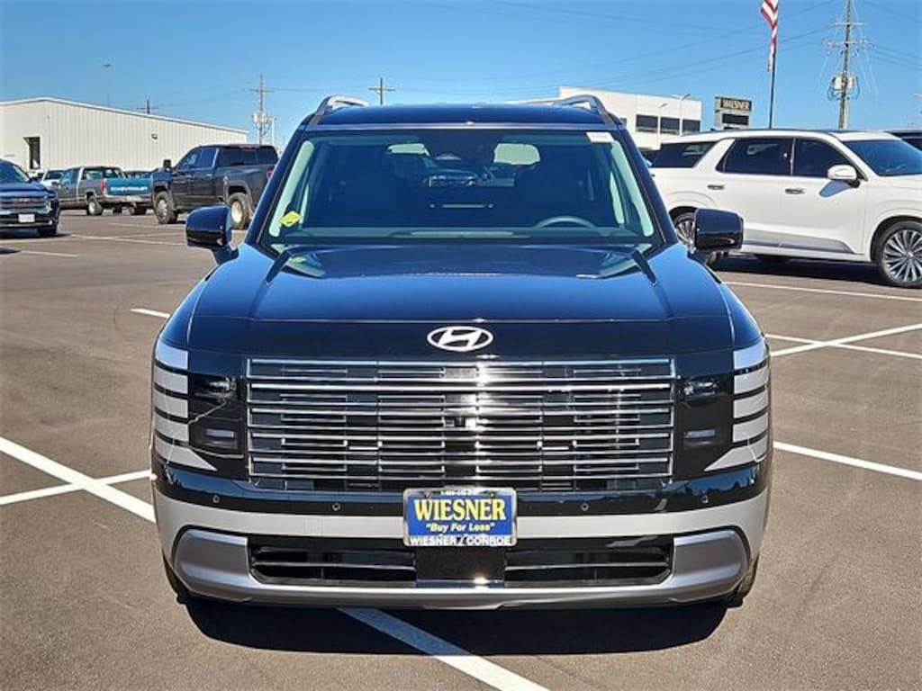 This 2026 Hyundai Palisade Limited in Abyss Black Pearl comes with the following features: V6 8-Speed Automatic FWD Option Group 01, 14 Speakers, 3rd row seats: split-bench, 4-Wheel Disc Brakes, ABS brakes, Air Conditioning, Alloy wheels, AM/FM radio: SiriusXM, Apple CarPlay & Android Auto, Audio memory, Auto High-beam Headlights, Auto-dimming door mirrors, Auto-dimming Rear-View mirror, Auto-leveling suspension, Automatic temperature control, Brake assist, Bumpers: body-color, Cargo Cover, Cargo Tray, Carpeted Floor Mats, Compass, Delay-off headlights, Driver door bin, Driver vanity mirror, Dual front impact airbags, Dual front side impact airbags, Electronic Stability Control, Emergency communication system: Bluelink+, Exterior Parking Camera Rear, First Aid Kit, Four wheel independent suspension, Front anti-roll bar, Front Bucket Seats, Front Center Armrest, Front dual zone A/C, Front reading lights, Fully automatic headlights, Garage door transmitter: HomeLink, Genuine wood console insert, Genuine wood dashboard insert, Heated & Ventilated Front Bucket Seats, Heated door mirrors, Heated front seats, Heated rear seats, Heated steering wheel, HVAC memory, Illuminated entry, Knee airbag, Leather Seat Trim, Leather steering wheel, Low tire pressure warning, Memory seat, Navigation System, Occupant sensing airbag, Outside temperature display, Overhead airbag, Overhead console, Panic alarm, Passenger door bin, Passenger vanity mirror, Power door mirrors, Power driver seat, Power Liftgate, Power moonroof, Power passenger seat, Power steering, Power windows, Radio data system, Radio: Infotainment Navigation System, Rear air conditioning, Rear anti-roll bar, Rear audio controls, Rear reading lights, Rear side impact airbag, Rear window defroster, Rear window wiper, Reclining 3rd row seat, Remote keyless entry, Security system, Speed control, Split folding rear seat, Spoiler, Steering wheel mounted audio controls, Tachometer, Telescoping steering wheel, Tilt steering wheel, Traction control, Trip computer, Turn signal indicator mirrors, Variably intermittent wipers, Ventilated front seats, Ventilated rear seats, and Wheels: 20" x 8.0J Alloy. Price includes: $1250 - Hyundai HMF Dealer Choice : $1250 discount and 5.49% APR for 24 months. $44.09 per $1000 financed. Available to well qualified buyers who finance through Hyundai Motor Finance. H704. Exp. 12/01/2025
