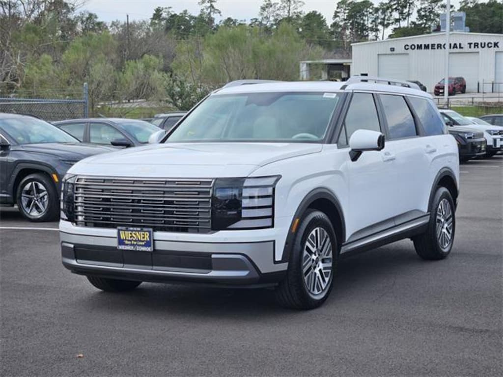 This 2026 Hyundai Palisade Hybrid Blue SEL Premium 7 Passenger in Creamy White Pearl comes with the following features: 2.5L Turbocharged GDI 4-Cylinder Hybrid 6-Speed Automatic FWD 2.5L Turbocharged GDI 4-Cylinder Hybrid Option Group 01, 2.5L Turbocharged GDI 4-Cylinder Hybrid, 100W Charging Cable, 3rd row seats: split-bench, 4-Wheel Disc Brakes, 8 Speakers, ABS brakes, Air Conditioning, Alloy wheels, AM/FM radio: SiriusXM, Apple CarPlay & Android Auto, Audio memory, Auto High-beam Headlights, Auto-dimming door mirrors, Auto-dimming Rear-View mirror, Auto-leveling suspension, Automatic temperature control, Brake assist, Bumpers: body-color, Cargo Tray, Carpeted Floor Mats, Compass, Delay-off headlights, Driver door bin, Driver vanity mirror, Dual front impact airbags, Dual front side impact airbags, Electronic Stability Control, Emergency communication system: None, Exterior Parking Camera Rear, First Aid Kit, Four wheel independent suspension, Front anti-roll bar, Front Bucket Seats, Front Center Armrest, Front dual zone A/C, Front reading lights, Fully automatic headlights, Garage door transmitter: HomeLink, H-Tex Leatherette Seat Trim, Heated and Ventilated Front Bucket Seats, Heated door mirrors, Heated front seats, Heated rear seats, Heated steering wheel, HVAC memory, Illuminated entry, Knee airbag, Leather steering wheel, Low tire pressure warning, Memory seat, Navigation System, Occupant sensing airbag, Outside temperature display, Overhead airbag, Overhead console, Panic alarm, Passenger door bin, Passenger vanity mirror, Power door mirrors, Power driver seat, Power Liftgate, Power moonroof, Power passenger seat, Power steering, Power windows, Radio data system, Radio: Infotainment Navigation System, Rear air conditioning, Rear anti-roll bar, Rear audio controls, Rear reading lights, Rear side impact airbag, Rear window defroster, Rear window wiper, Reclining 3rd row seat, Remote keyless entry, Security system, Speed control, Split folding rear seat, Spoiler, Steering wheel mounted audio controls, Tachometer, Telescoping steering wheel, Tilt steering wheel, Traction control, Trip computer, Turn signal indicator mirrors, Variably intermittent wipers, Ventilated front seats, Ventilated rear seats, and Wheels: 18" x 8.0J Alloy. Price includes: $500 - Hyundai HMF Dealer Choice : $500 discount and 5.39% APR for 24 months. $44.05 per $1000 financed. Available to well qualified buyers who finance through Hyundai Motor Finance. H704. Exp. 02/02/2026