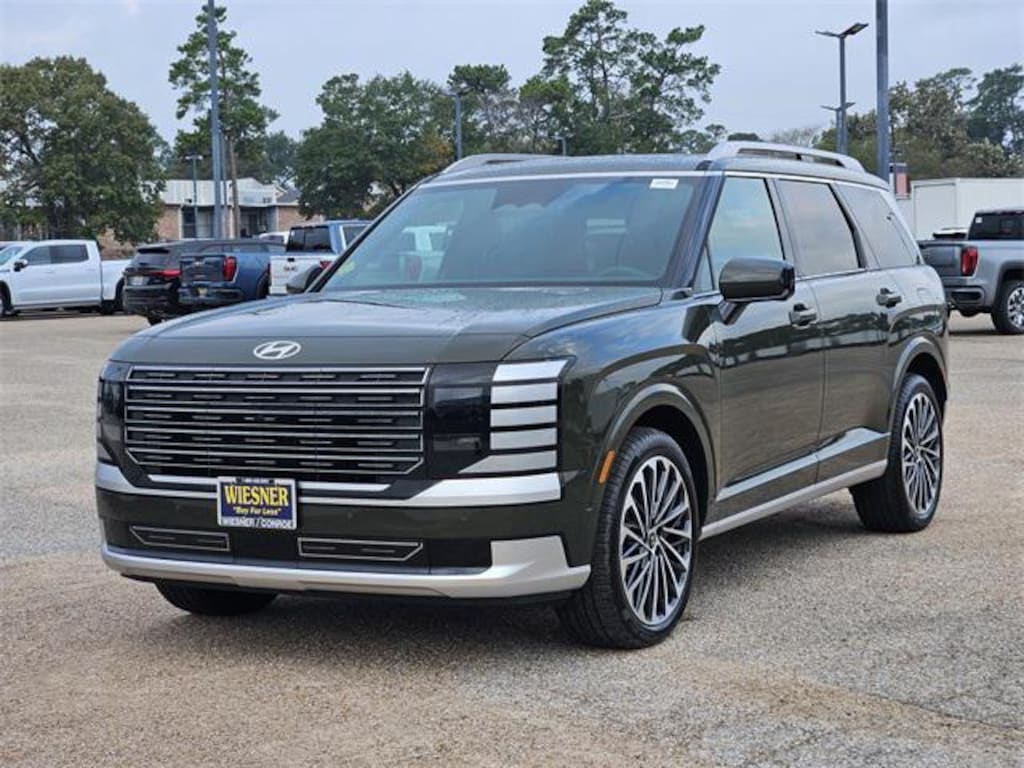 This 2026 Hyundai Palisade Hybrid Calligraphy in Titan Charcoal Pearl comes with the following features: 2.5L Turbocharged GDI 4-Cylinder Hybrid 6-Speed Automatic FWD 2.5L Turbocharged GDI 4-Cylinder Hybrid Option Group 01, 2.5L Turbocharged GDI 4-Cylinder Hybrid, 14 Speakers, 3rd row seats: split-bench, 4-Wheel Disc Brakes, ABS brakes, Air Conditioning, Alloy wheels, AM/FM radio: SiriusXM, Apple CarPlay & Android Auto, Audio memory, Auto High-beam Headlights, Auto-dimming door mirrors, Auto-dimming Rear-View mirror, Auto-leveling suspension, Automatic temperature control, Brake assist, Bumpers: body-color, Cargo Net, Carpeted Floor Mats, Compass, Delay-off headlights, Driver door bin, Driver vanity mirror, Dual front impact airbags, Dual front side impact airbags, Electronic Stability Control, Emergency communication system: None, Exterior Parking Camera Rear, First Aid Kit, Four wheel independent suspension, Front anti-roll bar, Front Bucket Seats, Front Center Armrest, Front dual zone A/C, Front reading lights, Fully automatic headlights, Garage door transmitter: HomeLink, Genuine wood console insert, Genuine wood dashboard insert, Heads-Up Display, Heated and Ventilated Front Bucket Seats, Heated door mirrors, Heated front seats, Heated rear seats, Heated steering wheel, HVAC memory, Illuminated entry, Knee airbag, Leather steering wheel, Low tire pressure warning, Memory seat, Navigation System, Occupant sensing airbag, Outside temperature display, Overhead airbag, Overhead console, Panic alarm, Passenger door bin, Passenger vanity mirror, Power door mirrors, Power driver seat, Power Liftgate, Power moonroof, Power passenger seat, Power steering, Power windows, Premium Nappa Leather Seat Trim, Radio data system, Radio: Infotainment Navigation System, Rain sensing wipers, Rear air conditioning, Rear anti-roll bar, Rear audio controls, Rear reading lights, Rear side impact airbag, Rear window defroster, Rear window wiper, Reclining 3rd row seat, Remote keyless entry, Security system, Speed control, Split folding rear seat, Spoiler, Steering wheel mounted audio controls, Tachometer, Telescoping steering wheel, Tilt steering wheel, Traction control, Trip computer, Turn signal indicator mirrors, Variably intermittent wipers, Ventilated front seats, Ventilated rear seats, and Wheels: 21" x 8.5J Alloy. Price includes: $1000 - Hyundai HMF Dealer Choice : $1000 discount and 5.49% APR for 24 months. $44.09 per $1000 financed. Available to well qualified buyers who finance through Hyundai Motor Finance. H704. Exp. 01/02/2026