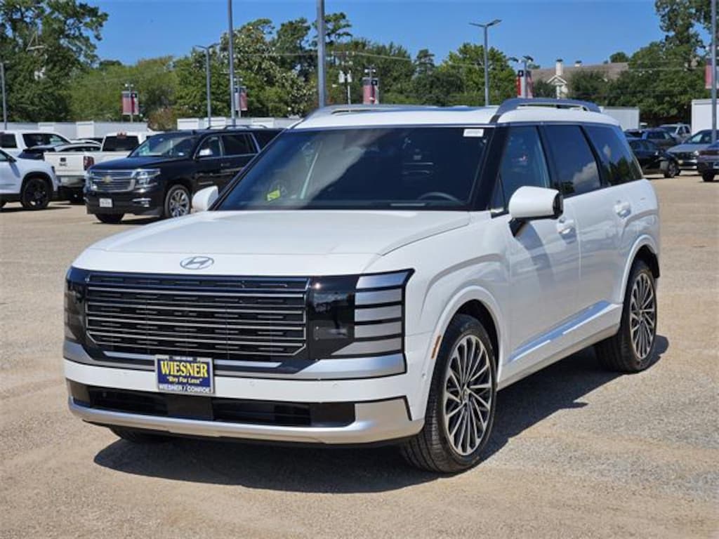 This 2026 Hyundai Palisade Calligraphy in Creamy White Pearl comes with the following features: V6 8-Speed Automatic FWD Option Group 01, 14 Speakers, 3rd row seats: split-bench, 4-Wheel Disc Brakes, ABS brakes, Air Conditioning, Alloy wheels, AM/FM radio: SiriusXM, Apple CarPlay & Android Auto, Audio memory, Auto High-beam Headlights, Auto-dimming door mirrors, Auto-dimming Rear-View mirror, Auto-leveling suspension, Automatic temperature control, Brake assist, Bumpers: body-color, Cargo Cover, Cargo Tray, Carpeted Floor Mats, Compass, Delay-off headlights, Driver door bin, Driver vanity mirror, Dual front impact airbags, Dual front side impact airbags, Electronic Stability Control, Emergency communication system: Bluelink+, Exterior Parking Camera Rear, First Aid Kit, Four wheel independent suspension, Front anti-roll bar, Front Bucket Seats, Front Center Armrest, Front dual zone A/C, Front reading lights, Fully automatic headlights, Garage door transmitter: HomeLink, Genuine wood console insert, Genuine wood dashboard insert, Heads-Up Display, Heated & Ventilated Front Bucket Seats, Heated door mirrors, Heated front seats, Heated rear seats, Heated steering wheel, HVAC memory, Illuminated entry, Knee airbag, Leather steering wheel, Low tire pressure warning, Memory seat, Navigation System, Occupant sensing airbag, Outside temperature display, Overhead airbag, Overhead console, Panic alarm, Passenger door bin, Passenger vanity mirror, Power door mirrors, Power driver seat, Power Liftgate, Power moonroof, Power passenger seat, Power steering, Power windows, Premium Nappa Leather Seat Trim, Radio data system, Radio: Infotainment Navigation System, Rain sensing wipers, Rear air conditioning, Rear anti-roll bar, Rear audio controls, Rear reading lights, Rear side impact airbag, Rear window defroster, Rear window wiper, Reclining 3rd row seat, Remote keyless entry, Security system, Speed control, Split folding rear seat, Spoiler, Steering wheel mounted audio controls, Tachometer, Telescoping steering wheel, Tilt steering wheel, Traction control, Trip computer, Turn signal indicator mirrors, Variably intermittent wipers, Ventilated front seats, Ventilated rear seats, and Wheels: 21" x 8.5J Alloy. Price includes: $1250 - Hyundai HMF Dealer Choice : $1250 discount and 5.49% APR for 24 months. $44.09 per $1000 financed. Available to well qualified buyers who finance through Hyundai Motor Finance. H704. Exp. 12/01/2025