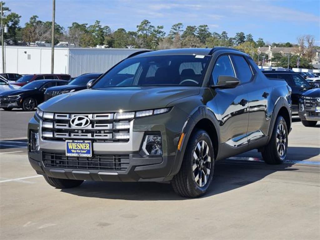 This 2026 Hyundai Santa Cruz SEL in Rockwood Green comes with the following features: 2.5L I4 8-Speed Automatic with SHIFTRONIC FWD Option Group 01, 18" x 7.5J Alloy Wheels, 4-Wheel Disc Brakes, 4.081 Axle Ratio, 6 Speakers, ABS brakes, Air Conditioning, All Season Fitted Liners, Alloy wheels, AM/FM radio: SiriusXM, Apple CarPlay & Android Auto, Auto High-beam Headlights, Auto-leveling suspension, Automatic temperature control, Bed Cargo Net, Brake assist, Bumpers: body-color, Carpeted Floor Mats, Compass, Delay-off headlights, Driver door bin, Driver vanity mirror, Dual front impact airbags, Dual front side impact airbags, Electronic Stability Control, Emergency communication system: None, Exterior Parking Camera Rear, Fender Flares, First Aid Kit, Four wheel independent suspension, Front anti-roll bar, Front Bucket Seats, Front Center Armrest, Front dual zone A/C, Front reading lights, Fully automatic headlights, H-Tex Leatherette Seat Trim, Heated door mirrors, Heated Front Bucket Seats, Heated front seats, Illuminated entry, Low tire pressure warning, Occupant sensing airbag, Outside temperature display, Overhead airbag, Overhead console, Panic alarm, Passenger door bin, Passenger vanity mirror, Power door mirrors, Power driver seat, Power moonroof, Power steering, Power windows, Radio data system, Radio: AM/FM/HD Audio System, Rear anti-roll bar, Rear reading lights, Rear side impact airbag, Rear step bumper, Rear window defroster, Remote keyless entry, Roadside Assistance Kit, Security system, Speed control, Speed-sensing steering, Split folding rear seat, Spoiler, Steering wheel mounted audio controls, Tachometer, Telescoping steering wheel, Tilt steering wheel, Traction control, Trip computer, Turn signal indicator mirrors, and Variably intermittent wipers. 22/30 City/Highway MPG Price includes: $250 - Hyundai HMF Dealer Choice : $250 discount and 5.39% APR for 24 months. $44.05 per $1000 financed. Available to well qualified buyers who finance through Hyundai Motor Finance. H704. Exp. 02/02/2026