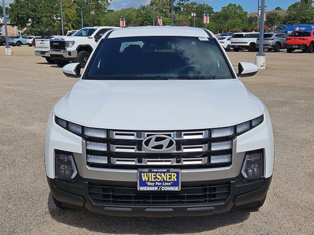 This 2026 Hyundai Santa Cruz SE in Atlas White comes with the following features: 2.5L I4 8-Speed Automatic with SHIFTRONIC FWD Option Group 01, 18" x 7.5J Alloy Wheels, 4-Wheel Disc Brakes, 4.081 Axle Ratio, 6 Speakers, ABS brakes, Air Conditioning, Alloy wheels, AM/FM radio: SiriusXM, Apple CarPlay & Android Auto, Auto High-beam Headlights, Auto-leveling suspension, Bed Cargo Net, Brake assist, Bumpers: body-color, Cargo Net, Carpeted Floor Mats, Compass, Delay-off headlights, Driver door bin, Driver vanity mirror, Dual front impact airbags, Dual front side impact airbags, Electronic Stability Control, Emergency communication system: None, Exterior Parking Camera Rear, Fender Flares, First Aid Kit, Four wheel independent suspension, Front anti-roll bar, Front Bucket Seats, Front Center Armrest, Front reading lights, Fully automatic headlights, Illuminated entry, Low tire pressure warning, Occupant sensing airbag, Outside temperature display, Overhead airbag, Overhead console, Panic alarm, Passenger door bin, Passenger vanity mirror, Power door mirrors, Power steering, Power windows, Radio data system, Radio: AM/FM/HD Audio System, Rear anti-roll bar, Rear side impact airbag, Rear step bumper, Rear window defroster, Remote keyless entry, Security system, Severe Weather Kit, Speed control, Speed-sensing steering, Split folding rear seat, Spoiler, Stain and Odor Resistant Cloth Seat Trim, Steering wheel mounted audio controls, Tachometer, Telescoping steering wheel, Tilt steering wheel, Traction control, Trip computer, and Variably intermittent wipers. 22/30 City/Highway MPG Price includes: $1750 - Retail Bonus Cash. Exp. 04/30/2026