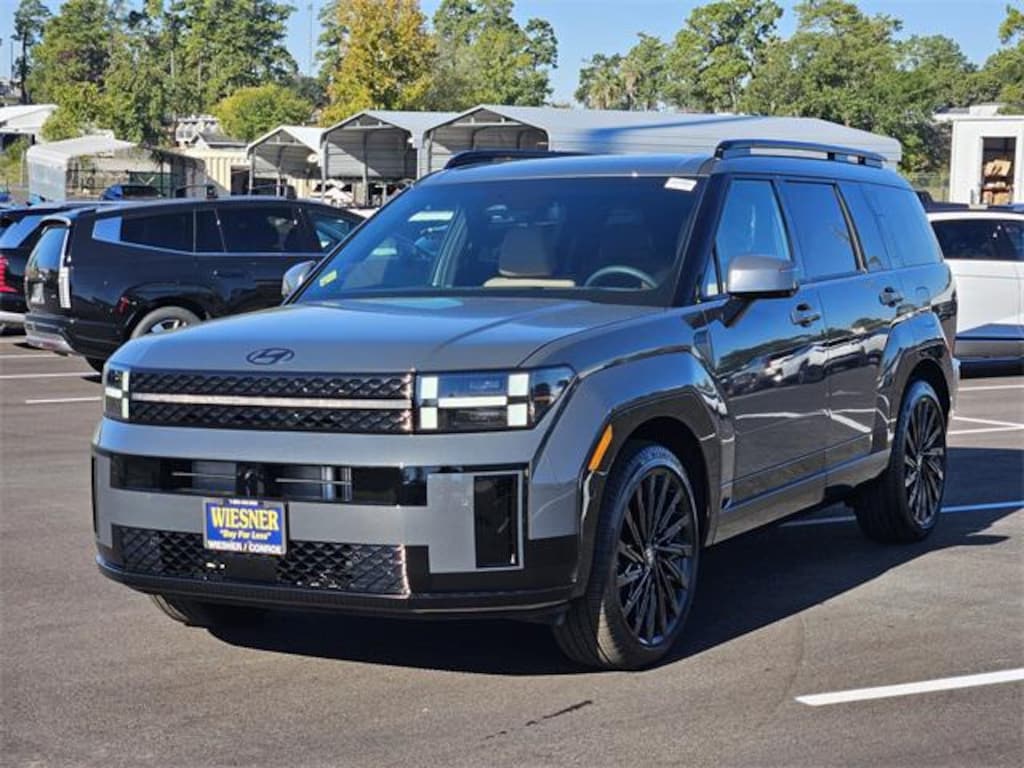 This 2026 Hyundai Santa Fe Calligraphy in Ecotronic Gray comes with the following features: 2.5L I4 8-Speed Automatic with SHIFTRONIC FWD Pecan Brown Leather Option Group 01, Tow & Go Package (Tow Hitch and Tow Hitch Ball Mount Kit), Pecan Brown Leather, 12 Speakers, 3rd row seats: bench, 4-Wheel Disc Brakes, ABS brakes, Air Conditioning, Alloy wheels, AM/FM radio: SiriusXM, Apple CarPlay & Android Auto, Auto High-beam Headlights, Auto-dimming Rear-View mirror, Automatic temperature control, Brake assist, Bumpers: body-color, Cargo Net, Cargo Tray, Carpeted Floor Mats, Delay-off headlights, Driver door bin, Driver vanity mirror, Dual front impact airbags, Dual front side impact airbags, Electronic Stability Control, Emergency communication system, Exterior Parking Camera Rear, First Aid Kit, Four wheel independent suspension, Front anti-roll bar, Front Bucket Seats, Front Center Armrest, Front dual zone A/C, Front reading lights, Fully automatic headlights, Garage door transmitter: HomeLink, Heads-Up Display, Heated & Ventilated Front Bucket Seats, Heated door mirrors, Heated front seats, Heated rear seats, Heated steering wheel, Illuminated entry, Knee airbag, Leather steering wheel, Low tire pressure warning, Memory seat, Navigation System, Occupant sensing airbag, Outside temperature display, Overhead airbag, Overhead console, Panic alarm, Passenger door bin, Passenger vanity mirror, Power door mirrors, Power driver seat, Power Liftgate, Power moonroof, Power passenger seat, Power steering, Power windows, Quilted Premium Nappa Leather Seat Trim, Radio: AM/FM/HD Bose Premium Audio System, Rain sensing wipers, Rear anti-roll bar, Rear side impact airbag, Rear window defroster, Rear window wiper, Remote keyless entry, Security system, Speed control, Speed-sensing steering, Split folding rear seat, Spoiler, Steering wheel mounted audio controls, Tachometer, Telescoping steering wheel, Tilt steering wheel, Traction control, Trip computer, Turn signal indicator mirrors, Variably intermittent wipers, Ventilated front seats, and Wheels: 21" x 8.5J Unique Dark Finish Alloy. Price includes: $3500 - Hyundai HMF Dealer Choice : $3500 discount and 5.49% APR for 24 months. $44.09 per $1000 financed. Available to well qualified buyers who finance through Hyundai Motor Finance. H704. Exp. 01/02/2026