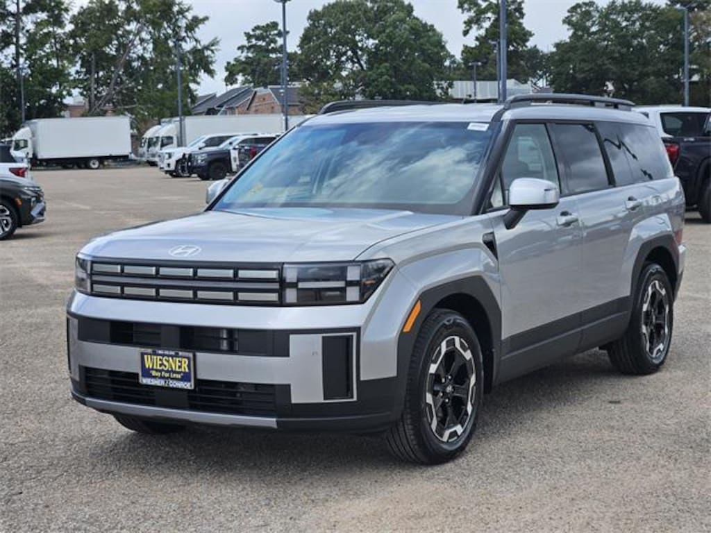 This 2026 Hyundai Santa Fe SEL in Shimmering Silver Pearl comes with the following features: 2.5L I4 8-Speed Automatic with SHIFTRONIC FWD Black Premium Synthetic Option Group 01, Black Premium Synthetic, 18" x 7.5J Alloy Wheels, 3rd row seats: bench, 4-Wheel Disc Brakes, 6 Speakers, ABS brakes, Air Conditioning, Alloy wheels, AM/FM radio: SiriusXM, Apple CarPlay & Android Auto, Auto High-beam Headlights, Automatic temperature control, Brake assist, Bumpers: body-color, Cargo Blocks, Cargo Cover/Screen, Cargo Net, Carpeted Floor Mats, Delay-off headlights, Driver door bin, Driver vanity mirror, Dual front impact airbags, Dual front side impact airbags, Electronic Stability Control, Emergency communication system, Exterior Parking Camera Rear, First Aid Kit, Four wheel independent suspension, Front anti-roll bar, Front Bucket Seats, Front Center Armrest, Front dual zone A/C, Front reading lights, Fully automatic headlights, H-Tex Leatherette Seat Trim, Heated door mirrors, Heated Front Bucket Seats, Heated front seats, Illuminated entry, Knee airbag, Leather steering wheel, Low tire pressure warning, Mudguards, Occupant sensing airbag, Outside temperature display, Overhead airbag, Overhead console, Panic alarm, Passenger door bin, Passenger vanity mirror, Power door mirrors, Power driver seat, Power Liftgate, Power steering, Power windows, Radio: AM/FM/HD Display Audio, Rear anti-roll bar, Rear seat center armrest, Rear side impact airbag, Rear window defroster, Rear window wiper, Remote keyless entry, Security system, Severe Weather Kit, Speed control, Speed-sensing steering, Split folding rear seat, Spoiler, Steering wheel mounted audio controls, Tachometer, Telescoping steering wheel, Tilt steering wheel, Traction control, Trip computer, Turn signal indicator mirrors, and Variably intermittent wipers. Price includes: $3500 - Hyundai HMF Dealer Choice: $3500 discount and 5.99% APR for 24 months. $44.32 per $1000 financed. Available to well qualified buyers who finance through Hyundai Motor Finance. H704. Exp. 11/03/2025