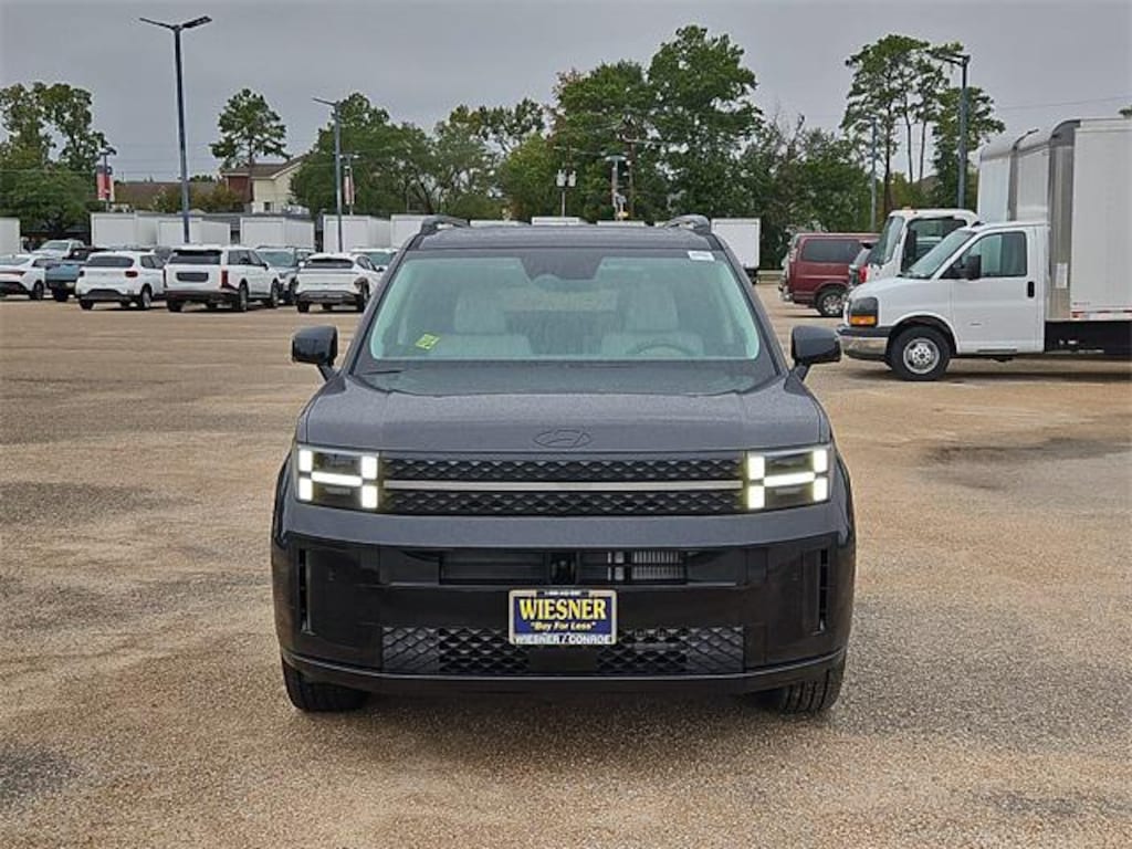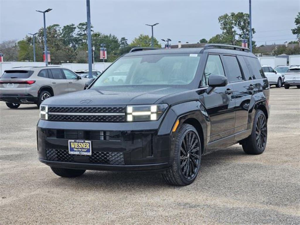 This 2026 Hyundai Santa Fe Calligraphy in Phantom Black comes with the following features: 2.5L I4 8-Speed Automatic with SHIFTRONIC FWD Gray Leather Option Group 01, Gray Leather, 12 Speakers, 3rd row seats: bench, 4-Wheel Disc Brakes, ABS brakes, Air Conditioning, Alloy wheels, AM/FM radio: SiriusXM, Apple CarPlay & Android Auto, Auto High-beam Headlights, Auto-dimming Rear-View mirror, Automatic temperature control, Brake assist, Bumpers: body-color, Cargo Cover/Screen, Cargo Net, Cargo Tray, Carpeted Floor Mats, Delay-off headlights, Driver door bin, Driver vanity mirror, Dual front impact airbags, Dual front side impact airbags, Electronic Stability Control, Emergency communication system, Exterior Parking Camera Rear, First Aid Kit, Four wheel independent suspension, Front anti-roll bar, Front Bucket Seats, Front Center Armrest, Front dual zone A/C, Front reading lights, Fully automatic headlights, Garage door transmitter: HomeLink, Heads-Up Display, Heated & Ventilated Front Bucket Seats, Heated door mirrors, Heated front seats, Heated rear seats, Heated steering wheel, Illuminated entry, Knee airbag, Leather steering wheel, Low tire pressure warning, Memory seat, Navigation System, Occupant sensing airbag, Outside temperature display, Overhead airbag, Overhead console, Panic alarm, Passenger door bin, Passenger vanity mirror, Power door mirrors, Power driver seat, Power Liftgate, Power moonroof, Power passenger seat, Power steering, Power windows, Quilted Premium Nappa Leather Seat Trim, Radio: AM/FM/HD Bose Premium Audio System, Rain sensing wipers, Rear anti-roll bar, Rear side impact airbag, Rear window defroster, Rear window wiper, Remote keyless entry, Roof Rack Crossbars, Security system, Severe Weather Kit, Speed control, Speed-sensing steering, Split folding rear seat, Spoiler, Steering wheel mounted audio controls, Tachometer, Telescoping steering wheel, Tilt steering wheel, Traction control, Trip computer, Turn signal indicator mirrors, Variably intermittent wipers, Ventilated front seats, and Wheels: 21" x 8.5J Unique Dark Finish Alloy. Price includes: $3500 - Hyundai HMF Dealer Choice : $3500 discount and 5.49% APR for 24 months. $44.09 per $1000 financed. Available to well qualified buyers who finance through Hyundai Motor Finance. H704. Exp. 01/02/2026