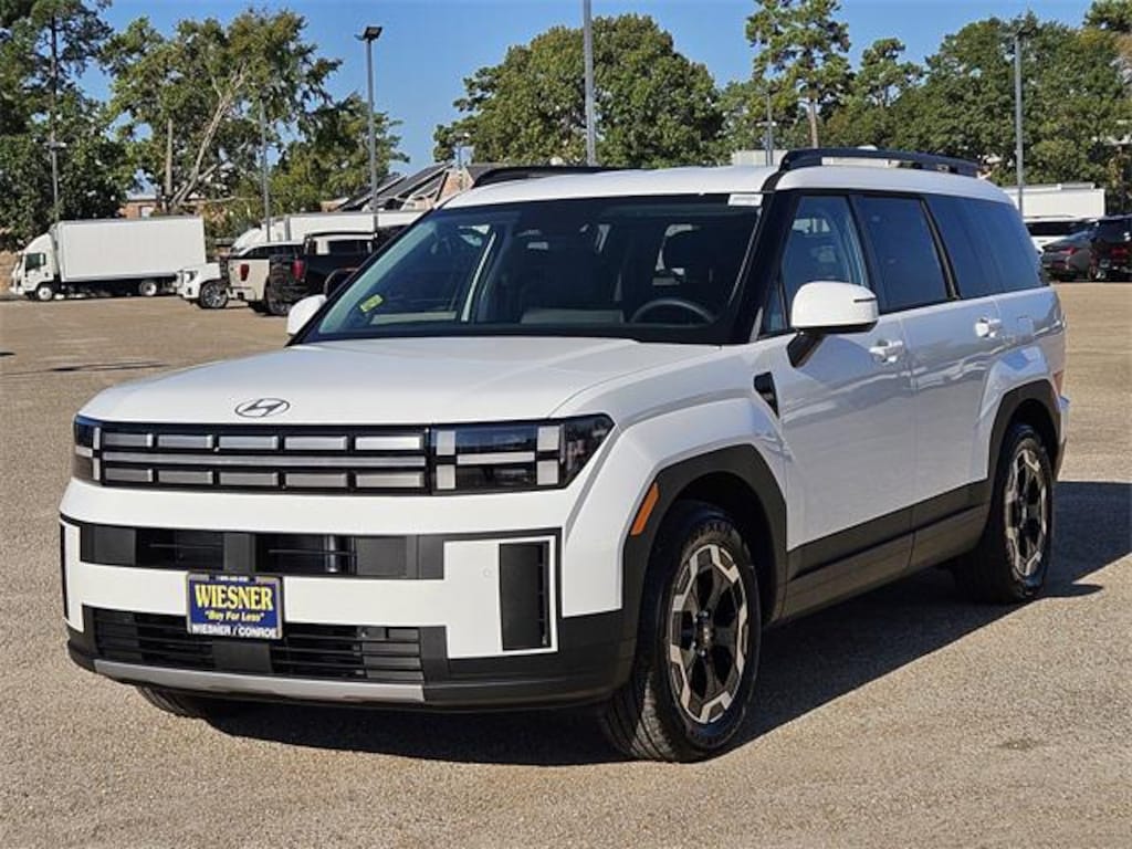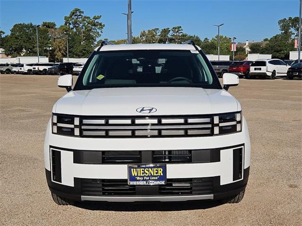 This 2026 Hyundai Santa Fe SEL in Serenity White comes with the following features: 2.5L I4 8-Speed Automatic with SHIFTRONIC FWD Black Premium Synthetic Option Group 01, Black Premium Synthetic, 18" x 7.5J Alloy Wheels, 3rd row seats: bench, 4-Wheel Disc Brakes, 6 Speakers, ABS brakes, Air Conditioning, Alloy wheels, AM/FM radio: SiriusXM, Apple CarPlay & Android Auto, Auto High-beam Headlights, Automatic temperature control, Brake assist, Bumpers: body-color, Cargo Blocks, Cargo Net, Cargo Tray, Carpeted Floor Mats, Delay-off headlights, Driver door bin, Driver vanity mirror, Dual front impact airbags, Dual front side impact airbags, Electronic Stability Control, Emergency communication system, Exterior Parking Camera Rear, First Aid Kit, Four wheel independent suspension, Front anti-roll bar, Front Bucket Seats, Front Center Armrest, Front dual zone A/C, Front reading lights, Fully automatic headlights, H-Tex Leatherette Seat Trim, Heated door mirrors, Heated Front Bucket Seats, Heated front seats, Illuminated entry, Knee airbag, Leather steering wheel, Low tire pressure warning, Occupant sensing airbag, Outside temperature display, Overhead airbag, Overhead console, Panic alarm, Passenger door bin, Passenger vanity mirror, Power door mirrors, Power driver seat, Power Liftgate, Power steering, Power windows, Radio: AM/FM/HD Display Audio, Rear anti-roll bar, Rear seat center armrest, Rear side impact airbag, Rear window defroster, Rear window wiper, Remote keyless entry, Roadside Assistance Kit, Security system, Speed control, Speed-sensing steering, Split folding rear seat, Spoiler, Steering wheel mounted audio controls, Tachometer, Telescoping steering wheel, Tilt steering wheel, Tow Hitch, Traction control, Trip computer, Turn signal indicator mirrors, and Variably intermittent wipers. Price includes: $3500 - Hyundai HMF Dealer Choice : $3500 discount and 5.49% APR for 24 months. $44.09 per $1000 financed. Available to well qualified buyers who finance through Hyundai Motor Finance. H704. Exp. 01/02/2026