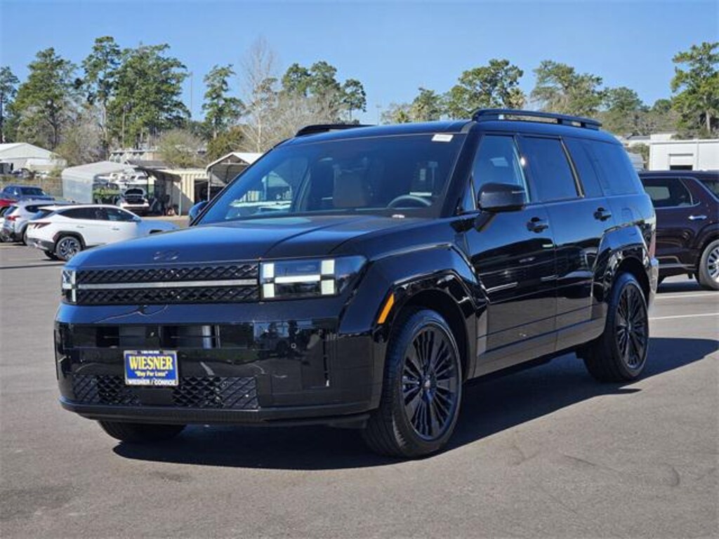 This 2026 Hyundai Santa Fe Hybrid Calligraphy in Phantom Black comes with the following features: I4 6-Speed Automatic with Shiftronic AWD I4 Option Group 01, I4, 12 Speakers, 3rd row seats: bench, 4-Wheel Disc Brakes, ABS brakes, Air Conditioning, Alloy wheels, AM/FM radio: SiriusXM, Apple CarPlay & Android Auto, Auto High-beam Headlights, Auto-dimming Rear-View mirror, Automatic temperature control, Brake assist, Bumpers: body-color, Cargo Cover/Screen, Cargo Net, Cargo Tray, Carpeted Floor Mats, Delay-off headlights, Driver door bin, Driver vanity mirror, Dual front impact airbags, Dual front side impact airbags, Electronic Stability Control, Emergency communication system, Exterior Parking Camera Rear, Four wheel independent suspension, Front anti-roll bar, Front Bucket Seats, Front Center Armrest, Front dual zone A/C, Front reading lights, Fully automatic headlights, Garage door transmitter: HomeLink, Heads-Up Display, Heated and Ventilated Front Bucket Seats, Heated door mirrors, Heated front seats, Heated rear seats, Heated steering wheel, Illuminated entry, Knee airbag, Leather steering wheel, Low tire pressure warning, Memory seat, Navigation System, Occupant sensing airbag, Outside temperature display, Overhead airbag, Overhead console, Panic alarm, Passenger door bin, Passenger vanity mirror, Power door mirrors, Power driver seat, Power Liftgate, Power moonroof, Power passenger seat, Power steering, Power windows, Quilted Premium Nappa Leather Seat Trim, Radio: AM/FM/HD Bose Premium Audio System, Rain sensing wipers, Rear anti-roll bar, Rear side impact airbag, Rear window defroster, Rear window wiper, Remote keyless entry, Roof Rack Crossbars, Security system, Speed control, Speed-sensing steering, Split folding rear seat, Spoiler, Steering wheel mounted audio controls, Tachometer, Telescoping steering wheel, Tilt steering wheel, Traction control, Trip computer, Turn signal indicator mirrors, Variably intermittent wipers, Ventilated front seats, and Wheels: 20" x 8.5J Unique Dark Finish Alloy. 35/34 City/Highway MPG Price includes: $4000 - Hyundai HMF Dealer Choice : $4000 discount and 5.39% APR for 24 months. $44.05 per $1000 financed. Available to well qualified buyers who finance through Hyundai Motor Finance. H704. Exp. 03/31/2026