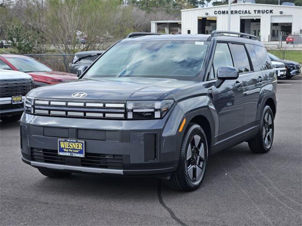 This 2026 Hyundai Santa Fe Hybrid SEL in Ecotronic Gray comes with the following features: I4 6-Speed Automatic with Shiftronic FWD I4 Option Group 01, I4, 18" x 7.5J Alloy Wheels, 3rd row seats: bench, 4-Wheel Disc Brakes, 6 Speakers, ABS brakes, Air Conditioning, Alloy wheels, AM/FM radio: SiriusXM, Apple CarPlay & Android Auto, Auto High-beam Headlights, Automatic temperature control, Brake assist, Bumpers: body-color, Cargo Cover/Screen, Cargo Net, Cargo Organizer, Cargo Tray, Carpeted Floor Mats, Delay-off headlights, Driver door bin, Driver vanity mirror, Dual front impact airbags, Dual front side impact airbags, Electronic Stability Control, Emergency communication system, Exterior Parking Camera Rear, First Aid Kit, Four wheel independent suspension, Front anti-roll bar, Front Bucket Seats, Front Center Armrest, Front dual zone A/C, Front reading lights, Fully automatic headlights, H-Tex Leatherette Seat Trim, Heated door mirrors, Heated Front Bucket Seats, Heated front seats, Illuminated entry, Knee airbag, Leather steering wheel, Low tire pressure warning, Occupant sensing airbag, Outside temperature display, Overhead airbag, Overhead console, Panic alarm, Passenger door bin, Passenger vanity mirror, Power door mirrors, Power driver seat, Power Liftgate, Power steering, Power windows, Radio: AM/FM/HD Display Audio, Rear anti-roll bar, Rear seat center armrest, Rear side impact airbag, Rear window defroster, Rear window wiper, Remote keyless entry, Roadside Assistance Kit, Security system, Speed control, Speed-sensing steering, Split folding rear seat, Spoiler, Steering wheel mounted audio controls, Tachometer, Telescoping steering wheel, Tilt steering wheel, Traction control, Trip computer, Turn signal indicator mirrors, and Variably intermittent wipers. 37/36 City/Highway MPG Price includes: $4000 - Hyundai HMF Dealer Choice : $4000 discount and 5.39% APR for 24 months. $44.05 per $1000 financed. Available to well qualified buyers who finance through Hyundai Motor Finance. H704. Exp. 03/31/2026