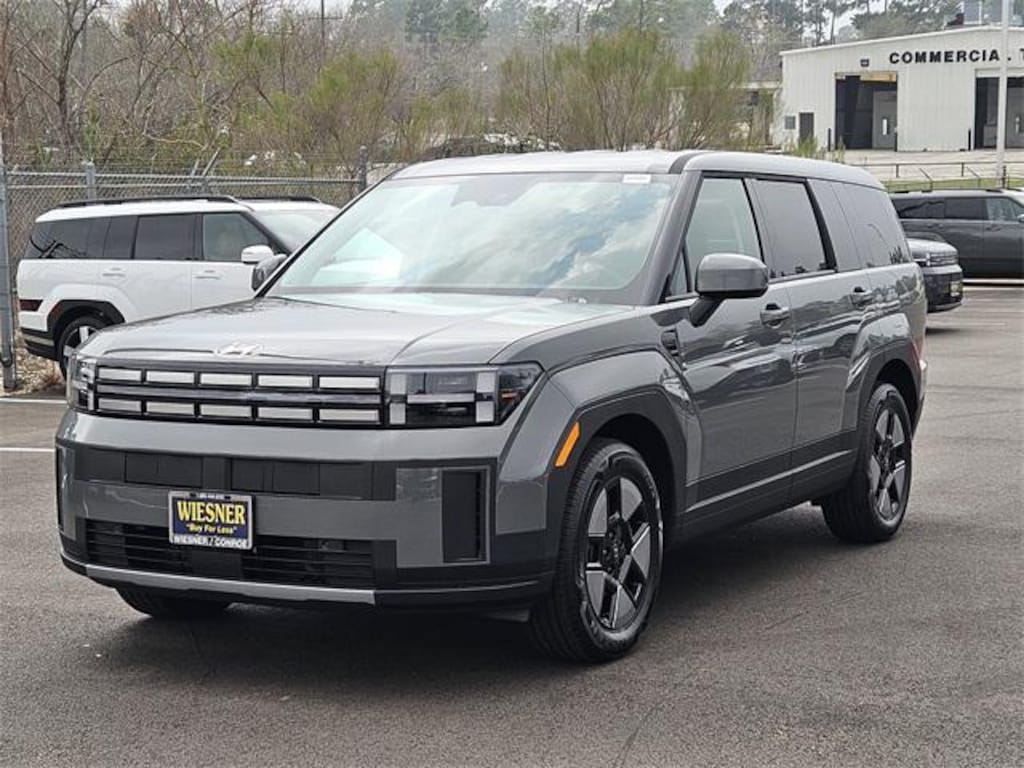 This 2026 Hyundai Santa Fe Hybrid SE in Hampton Gray comes with the following features: I4 6-Speed Automatic with Shiftronic FWD I4 Option Group 01, I4, 18" x 7.5J Alloy Wheels, 3rd row seats: bench, 4-Wheel Disc Brakes, 6 Speakers, ABS brakes, Air Conditioning, Alloy wheels, AM/FM radio: SiriusXM, Apple CarPlay & Android Auto, Auto High-beam Headlights, Automatic temperature control, Brake assist, Bumpers: body-color, Cargo Net, Carpeted Floor Mats, Delay-off headlights, Driver door bin, Driver vanity mirror, Dual front impact airbags, Dual front side impact airbags, Electronic Stability Control, Emergency communication system, Exterior Parking Camera Rear, Four wheel independent suspension, Front anti-roll bar, Front Bucket Seats, Front Center Armrest, Front dual zone A/C, Front reading lights, Fully automatic headlights, Heated door mirrors, Illuminated entry, Knee airbag, Leather steering wheel, Low tire pressure warning, Occupant sensing airbag, Outside temperature display, Overhead airbag, Overhead console, Panic alarm, Passenger door bin, Passenger vanity mirror, Power door mirrors, Power Liftgate, Power steering, Power windows, Radio: AM/FM/HD Display Audio, Rear anti-roll bar, Rear seat center armrest, Rear side impact airbag, Rear window defroster, Rear window wiper, Remote keyless entry, Security system, Speed control, Speed-sensing steering, Split folding rear seat, Spoiler, Steering wheel mounted audio controls, Tachometer, Telescoping steering wheel, Tilt steering wheel, Traction control, Trip computer, Variably intermittent wipers, and YES Essentials Stain-Resistant Cloth Seat Trim. 37/36 City/Highway MPG Price includes: $4000 - Hyundai HMF Dealer Choice : $4000 discount and 5.39% APR for 24 months. $44.05 per $1000 financed. Available to well qualified buyers who finance through Hyundai Motor Finance. H704. Exp. 03/31/2026