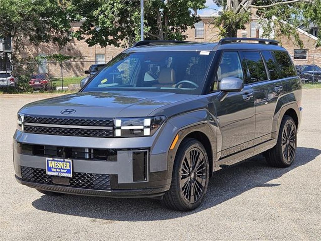 This 2026 Hyundai Santa Fe Hybrid Calligraphy in Ecotronic Gray comes with the following features: I4 6-Speed Automatic with Shiftronic AWD I4 Option Group 01, I4, 12 Speakers, 3rd row seats: bench, 4-Wheel Disc Brakes, ABS brakes, Air Conditioning, Alloy wheels, AM/FM radio: SiriusXM, Apple CarPlay & Android Auto, Auto High-beam Headlights, Auto-dimming Rear-View mirror, Automatic temperature control, Brake assist, Bumpers: body-color, Cargo Net, Cargo Organizer, Cargo Tray, Carpeted Floor Mats, Delay-off headlights, Driver door bin, Driver vanity mirror, Dual front impact airbags, Dual front side impact airbags, Electronic Stability Control, Emergency communication system, Exterior Parking Camera Rear, Four wheel independent suspension, Front anti-roll bar, Front Bucket Seats, Front Center Armrest, Front dual zone A/C, Front reading lights, Fully automatic headlights, Garage door transmitter: HomeLink, Heads-Up Display, Heated & Ventilated Front Bucket Seats, Heated door mirrors, Heated front seats, Heated rear seats, Heated steering wheel, Illuminated entry, Knee airbag, Leather steering wheel, Low tire pressure warning, Memory seat, Mudguards, Navigation System, Occupant sensing airbag, Outside temperature display, Overhead airbag, Overhead console, Panic alarm, Passenger door bin, Passenger vanity mirror, Power door mirrors, Power driver seat, Power Liftgate, Power moonroof, Power passenger seat, Power steering, Power windows, Quilted Premium Nappa Leather Seat Trim, Radio: AM/FM/HD Bose Premium Audio System, Rain sensing wipers, Rear anti-roll bar, Rear side impact airbag, Rear window defroster, Rear window wiper, Remote keyless entry, Roof Rack Crossbars, Security system, Speed control, Speed-sensing steering, Split folding rear seat, Spoiler, Steering wheel mounted audio controls, Tachometer, Telescoping steering wheel, Tilt steering wheel, Traction control, Trip computer, Turn signal indicator mirrors, Variably intermittent wipers, Ventilated front seats, and Wheels: 20" x 8.5J Unique Dark Finish Alloy. Price includes: $3000 - Hyundai HMF Dealer Choice : $3000 discount and 5.99% APR for 24 months. $44.32 per $1000 financed. Available to well qualified buyers who finance through Hyundai Motor Finance. H704. Exp. 11/03/2025