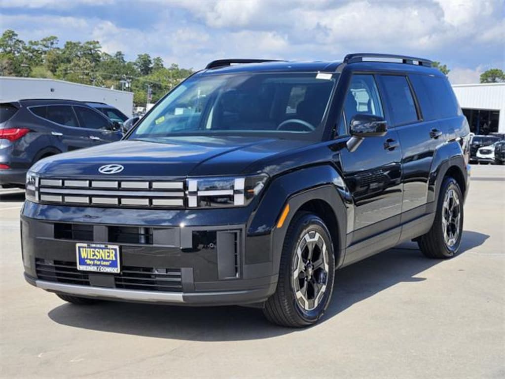 This 2026 Hyundai Santa Fe SEL in Phantom Black comes with the following features: 2.5L I4 8-Speed Automatic with SHIFTRONIC FWD Black Premium Synthetic Option Group 01, Black Premium Synthetic, 18" x 7.5J Alloy Wheels, 3rd row seats: bench, 4-Wheel Disc Brakes, 6 Speakers, ABS brakes, Air Conditioning, Alloy wheels, AM/FM radio: SiriusXM, Apple CarPlay & Android Auto, Auto High-beam Headlights, Automatic temperature control, Brake assist, Bumpers: body-color, Cargo Blocks, Cargo Net, Cargo Tray, Carpeted Floor Mats, Delay-off headlights, Driver door bin, Driver vanity mirror, Dual front impact airbags, Dual front side impact airbags, Electronic Stability Control, Emergency communication system, Exterior Parking Camera Rear, First Aid Kit, Four wheel independent suspension, Front anti-roll bar, Front Bucket Seats, Front Center Armrest, Front dual zone A/C, Front reading lights, Fully automatic headlights, H-Tex Leatherette Seat Trim, Heated door mirrors, Heated Front Bucket Seats, Heated front seats, Illuminated entry, Knee airbag, Leather steering wheel, Low tire pressure warning, Occupant sensing airbag, Outside temperature display, Overhead airbag, Overhead console, Panic alarm, Passenger door bin, Passenger vanity mirror, Power door mirrors, Power driver seat, Power Liftgate, Power steering, Power windows, Radio: AM/FM/HD Display Audio, Rear anti-roll bar, Rear seat center armrest, Rear side impact airbag, Rear window defroster, Rear window wiper, Remote keyless entry, Roadside Assistance Kit, Security system, Speed control, Speed-sensing steering, Split folding rear seat, Spoiler, Steering wheel mounted audio controls, Tachometer, Telescoping steering wheel, Tilt steering wheel, Tow Hitch, Traction control, Trip computer, Turn signal indicator mirrors, and Variably intermittent wipers. Price includes: $3500 - Hyundai HMF Dealer Choice : $3500 discount and 5.49% APR for 24 months. $44.09 per $1000 financed. Available to well qualified buyers who finance through Hyundai Motor Finance. H704. Exp. 12/01/2025