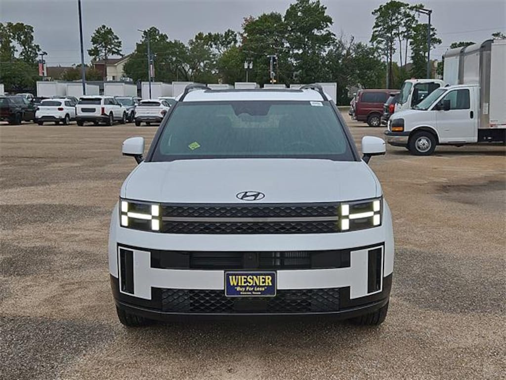 This 2026 Hyundai Santa Fe Calligraphy in Serenity White comes with the following features: 2.5L I4 8-Speed Automatic with SHIFTRONIC FWD Black Leather Option Group 01, Black Leather, 12 Speakers, 3rd row seats: bench, 4-Wheel Disc Brakes, ABS brakes, Air Conditioning, Alloy wheels, AM/FM radio: SiriusXM, Apple CarPlay & Android Auto, Auto High-beam Headlights, Auto-dimming Rear-View mirror, Automatic temperature control, Brake assist, Bumpers: body-color, Cargo Cover/Screen, Cargo Net, Carpeted Floor Mats, Delay-off headlights, Driver door bin, Driver vanity mirror, Dual front impact airbags, Dual front side impact airbags, Electronic Stability Control, Emergency communication system, Exterior Parking Camera Rear, First Aid Kit, Four wheel independent suspension, Front anti-roll bar, Front Bucket Seats, Front Center Armrest, Front dual zone A/C, Front reading lights, Fully automatic headlights, Garage door transmitter: HomeLink, Heads-Up Display, Heated & Ventilated Front Bucket Seats, Heated door mirrors, Heated front seats, Heated rear seats, Heated steering wheel, Illuminated entry, Knee airbag, Leather steering wheel, Low tire pressure warning, Memory seat, Mudguards, Navigation System, Occupant sensing airbag, Outside temperature display, Overhead airbag, Overhead console, Panic alarm, Passenger door bin, Passenger vanity mirror, Power door mirrors, Power driver seat, Power Liftgate, Power moonroof, Power passenger seat, Power steering, Power windows, Quilted Premium Nappa Leather Seat Trim, Radio: AM/FM/HD Bose Premium Audio System, Rain sensing wipers, Rear anti-roll bar, Rear side impact airbag, Rear window defroster, Rear window wiper, Remote keyless entry, Roadside Assistance Kit, Security system, Speed control, Speed-sensing steering, Split folding rear seat, Spoiler, Steering wheel mounted audio controls, Tachometer, Telescoping steering wheel, Tilt steering wheel, Traction control, Trip computer, Turn signal indicator mirrors, Variably intermittent wipers, Ventilated front seats, and Wheels: 21" x 8.5J Unique Dark Finish Alloy. Price includes: $1500 - Hyundai HMF Dealer Choice : $1500 discount and 5.39% APR for 24 months. $44.05 per $1000 financed. Available to well qualified buyers who finance through Hyundai Motor Finance. H704. Exp. 02/02/2026