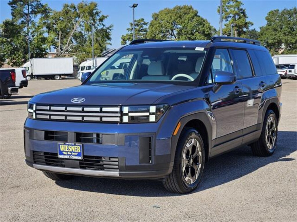This 2026 Hyundai Santa Fe SEL in Atlantis Blue comes with the following features: 2.5L I4 8-Speed Automatic with SHIFTRONIC FWD Gray Premium Synthetic Option Group 01, Gray Premium Synthetic, 18" x 7.5J Alloy Wheels, 3rd row seats: bench, 4-Wheel Disc Brakes, 6 Speakers, ABS brakes, Air Conditioning, All Season Fitted Liners, Alloy wheels, AM/FM radio: SiriusXM, Apple CarPlay & Android Auto, Auto High-beam Headlights, Automatic temperature control, Brake assist, Bumpers: body-color, Cargo Blocks, Cargo Cover/Screen, Cargo Net, Carpeted Floor Mats, Delay-off headlights, Driver door bin, Driver vanity mirror, Dual front impact airbags, Dual front side impact airbags, Electronic Stability Control, Emergency communication system, Exterior Parking Camera Rear, First Aid Kit, Four wheel independent suspension, Front anti-roll bar, Front Bucket Seats, Front Center Armrest, Front dual zone A/C, Front reading lights, Fully automatic headlights, H-Tex Leatherette Seat Trim, Heated door mirrors, Heated Front Bucket Seats, Heated front seats, Illuminated entry, Knee airbag, Leather steering wheel, Low tire pressure warning, Mudguards, Occupant sensing airbag, Outside temperature display, Overhead airbag, Overhead console, Panic alarm, Passenger door bin, Passenger vanity mirror, Power door mirrors, Power driver seat, Power Liftgate, Power steering, Power windows, Radio: AM/FM/HD Display Audio, Rear anti-roll bar, Rear seat center armrest, Rear side impact airbag, Rear window defroster, Rear window wiper, Remote keyless entry, Roadside Assistance Kit, Security system, Speed control, Speed-sensing steering, Split folding rear seat, Spoiler, Steering wheel mounted audio controls, Tachometer, Telescoping steering wheel, Tilt steering wheel, Traction control, Trip computer, Turn signal indicator mirrors, and Variably intermittent wipers. Price includes: $3500 - Hyundai HMF Dealer Choice : $3500 discount and 5.49% APR for 24 months. $44.09 per $1000 financed. Available to well qualified buyers who finance through Hyundai Motor Finance. H704. Exp. 12/01/2025
