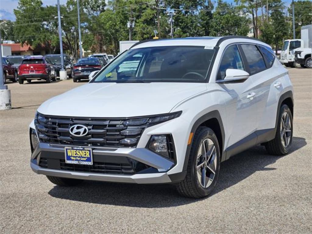 This 2026 Hyundai Tucson SEL in White Pearl comes with the following features: 2.5L I4 DGI DOHC 16V LEV3-SULEV30 187hp 8-Speed Automatic with SHIFTRONIC FWD Option Group 01, 18" x 7.5J Alloy Wheels, 4-Wheel Disc Brakes, 6 Speakers, ABS brakes, Air Conditioning, Alloy wheels, AM/FM radio: SiriusXM, Apple CarPlay & Android Auto, Auto High-beam Headlights, Auto-dimming Rear-View mirror, Automatic temperature control, Brake assist, Bumpers: body-color, Cargo Blocks, Cargo Cover, Cargo Net, Cargo Tray, Carpeted Floor Mats, Delay-off headlights, Driver door bin, Driver vanity mirror, Dual front impact airbags, Dual front side impact airbags, Electronic Stability Control, Emergency communication system: Bluelink+, First Aid Kit, Four wheel independent suspension, Front anti-roll bar, Front Bucket Seats, Front Center Armrest, Front dual zone A/C, Front reading lights, Fully automatic headlights, H-Tex Leatherette Seat Trim, Heated door mirrors, Heated Front Bucket Seats, Heated front seats, Illuminated entry, Leather Shift Knob, Leather steering wheel, Low tire pressure warning, Navigation System, Occupant sensing airbag, Outside temperature display, Overhead airbag, Overhead console, Panic alarm, Passenger door bin, Passenger vanity mirror, Power door mirrors, Power driver seat, Power Liftgate, Power moonroof, Power steering, Power windows, Radio data system, Radio: AM/FM/HD Audio System, Rear anti-roll bar, Rear reading lights, Rear seat center armrest, Rear side impact airbag, Rear window defroster, Rear window wiper, Remote keyless entry, Roof Rack Cross Rails, Security system, Severe Weather Kit, Speed control, Split folding rear seat, Spoiler, Steering wheel mounted audio controls, Tachometer, Telescoping steering wheel, Tilt steering wheel, Traction control, Trip computer, Turn signal indicator mirrors, and Variably intermittent wipers. 25/33 City/Highway MPG Price includes: $1500 - Hyundai HMF Dealer Choice : $1500 discount and 5.99% APR for 24 months. $44.32 per $1000 financed. Available to well qualified buyers who finance through Hyundai Motor Finance. H704. Exp. 11/03/2025