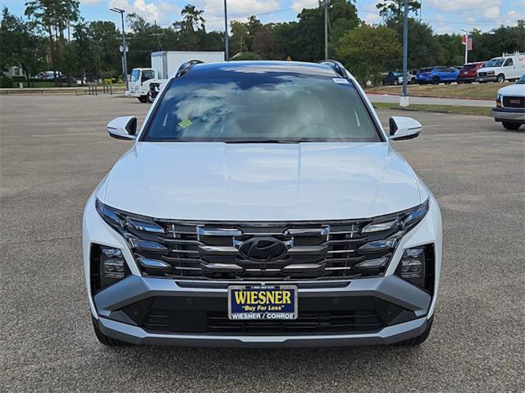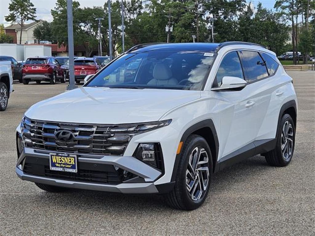 This 2026 Hyundai Tucson Limited in White Pearl comes with the following features: 2.5L I4 DGI DOHC 16V LEV3-SULEV30 187hp 8-Speed Automatic with SHIFTRONIC FWD Option Group 01, 4-Wheel Disc Brakes, 8 Speakers, ABS brakes, Air Conditioning, Alloy wheels, AM/FM radio: SiriusXM, Apple CarPlay & Android Auto, Auto High-beam Headlights, Auto-dimming Rear-View mirror, Automatic temperature control, Brake assist, Bumpers: body-color, Cargo Blocks, Cargo Cover, Cargo Net, Cargo Tray, Carpeted Floor Mats, Delay-off headlights, Driver door bin, Driver vanity mirror, Dual front impact airbags, Dual front side impact airbags, Electronic Stability Control, Emergency communication system: Bluelink+, First Aid Kit, Four wheel independent suspension, Front anti-roll bar, Front Bucket Seats, Front Center Armrest, Front dual zone A/C, Front reading lights, Fully automatic headlights, Garage door transmitter: HomeLink, Heads-Up Display, Heated & Ventilated Front Bucket Seats, Heated door mirrors, Heated front seats, Heated rear seats, Heated steering wheel, Illuminated entry, Leather Shift Knob, Leather steering wheel, Leather-Trimmed Seat Trim, Low tire pressure warning, Memory seat, Navigation System, Occupant sensing airbag, Outside temperature display, Overhead airbag, Overhead console, Panic alarm, Passenger door bin, Passenger vanity mirror, Power door mirrors, Power driver seat, Power Liftgate, Power moonroof, Power passenger seat, Power steering, Power windows, Radio data system, Radio: Bose Premium w/AM/FM/HD Audio System, Rain sensing wipers, Rear anti-roll bar, Rear reading lights, Rear seat center armrest, Rear side impact airbag, Rear window defroster, Rear window wiper, Remote keyless entry, Roof Rack Cross Rails, Security system, Severe Weather Kit, Speed control, Split folding rear seat, Spoiler, Steering wheel mounted audio controls, Tachometer, Telescoping steering wheel, Tilt steering wheel, Traction control, Trip computer, Turn signal indicator mirrors, Variably intermittent wipers, Ventilated front seats, and Wheels: 19" x 7.5J Alloy. 25/33 City/Highway MPG Price includes: $1500 - Hyundai HMF Dealer Choice : $1500 discount and 5.99% APR for 24 months. $44.32 per $1000 financed. Available to well qualified buyers who finance through Hyundai Motor Finance. H704. Exp. 11/03/2025