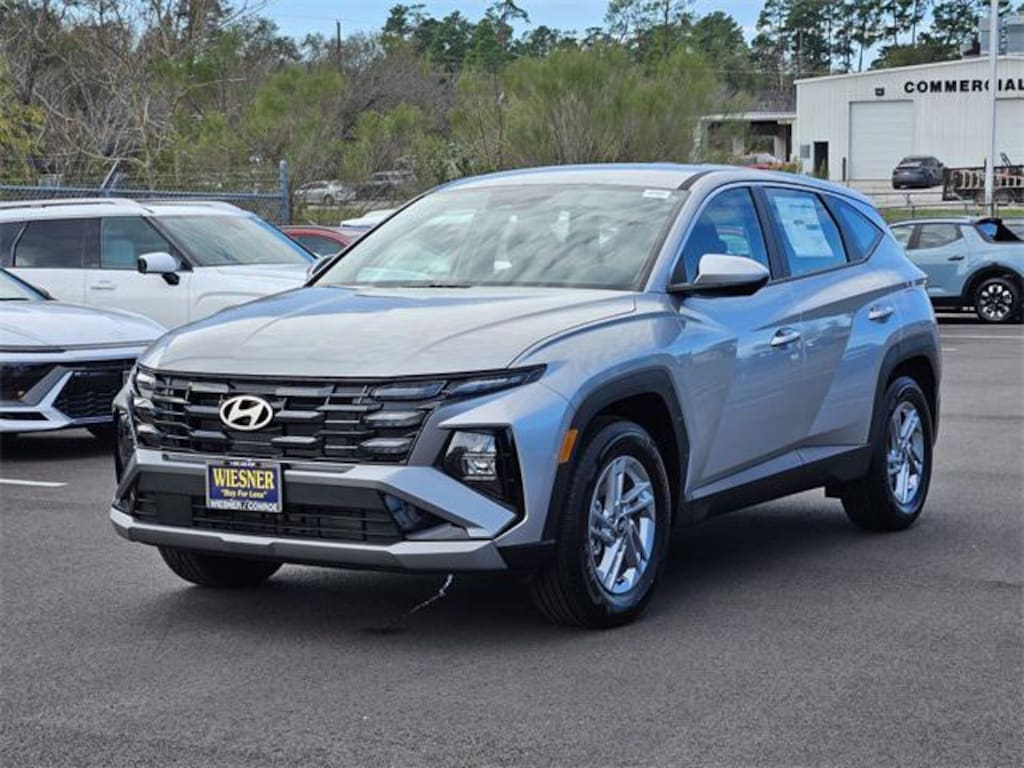 This 2026 Hyundai Tucson SE in Shimmering Silver comes with the following features: 2.5L I4 DGI DOHC 16V LEV3-SULEV30 187hp 8-Speed Automatic with SHIFTRONIC FWD Option Group 01, 17" x 7.0J Alloy Wheels, 4-Wheel Disc Brakes, 6 Speakers, ABS brakes, Air Conditioning, All Season Fitted Liners, Alloy wheels, AM/FM radio: SiriusXM, Apple CarPlay & Android Auto, Auto High-beam Headlights, Brake assist, Bumpers: body-color, Cargo Net, Cargo Tray, Carpeted Floor Mats, Delay-off headlights, Driver door bin, Driver vanity mirror, Dual front impact airbags, Dual front side impact airbags, Electronic Stability Control, Emergency communication system: None, First Aid Kit, Four wheel independent suspension, Front anti-roll bar, Front Bucket Seats, Front Center Armrest, Front reading lights, Fully automatic headlights, Illuminated entry, Low tire pressure warning, Occupant sensing airbag, Outside temperature display, Overhead airbag, Overhead console, Panic alarm, Passenger door bin, Passenger vanity mirror, Power door mirrors, Power steering, Power windows, Radio data system, Radio: AM/FM/HD Audio System, Rear anti-roll bar, Rear reading lights, Rear seat center armrest, Rear side impact airbag, Rear window defroster, Rear window wiper, Remote keyless entry, Security system, Speed control, Split folding rear seat, Spoiler, Stain and Odor Resistant Cloth Seat Trim, Steering wheel mounted audio controls, Tachometer, Telescoping steering wheel, Tilt steering wheel, Traction control, Trip computer, and Variably intermittent wipers. 25/33 City/Highway MPG Price includes: $1000 - Hyundai HMF Dealer Choice : $1000 discount and 5.39% APR for 24 months. $44.05 per $1000 financed. Available to well qualified buyers who finance through Hyundai Motor Finance. H704. Exp. 02/02/2026