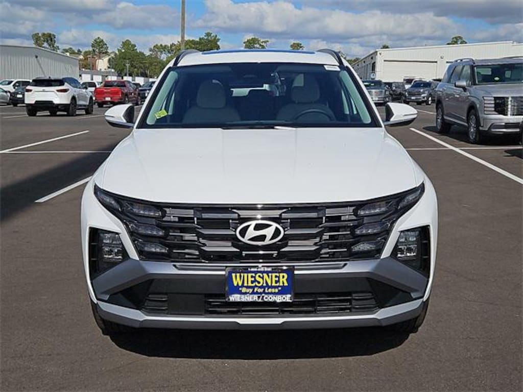 This 2026 Hyundai Tucson SEL Premium in White Pearl comes with the following features: 2.5L I4 DGI DOHC 16V LEV3-SULEV30 187hp 8-Speed Automatic with SHIFTRONIC FWD Option Group 01, 18" x 7.5J Alloy Wheels, 4-Wheel Disc Brakes, 6 Speakers, ABS brakes, Air Conditioning, All Season Fitted Liners, Alloy wheels, AM/FM radio: SiriusXM, Apple CarPlay & Android Auto, Auto High-beam Headlights, Auto-dimming Rear-View mirror, Automatic temperature control, Brake assist, Bumpers: body-color, Cargo Net, Cargo Tray, Carpeted Floor Mats, Delay-off headlights, Driver door bin, Driver vanity mirror, Dual front impact airbags, Dual front side impact airbags, Electronic Stability Control, Emergency communication system: Bluelink+, First Aid Kit, Four wheel independent suspension, Front anti-roll bar, Front Bucket Seats, Front Center Armrest, Front dual zone A/C, Front reading lights, Fully automatic headlights, H-Tex Leatherette Seat Trim, Heated door mirrors, Heated Front Bucket Seats, Heated front seats, Illuminated entry, Leather Shift Knob, Leather steering wheel, Low tire pressure warning, Navigation System, Occupant sensing airbag, Outside temperature display, Overhead airbag, Overhead console, Panic alarm, Passenger door bin, Passenger vanity mirror, Power door mirrors, Power driver seat, Power Liftgate, Power moonroof, Power steering, Power windows, Radio data system, Radio: AM/FM/HD Audio System, Rear anti-roll bar, Rear reading lights, Rear seat center armrest, Rear side impact airbag, Rear window defroster, Rear window wiper, Remote keyless entry, Roadside Assistance Kit, Security system, Speed control, Split folding rear seat, Spoiler, Steering wheel mounted audio controls, Tachometer, Telescoping steering wheel, Tilt steering wheel, Traction control, Trip computer, Turn signal indicator mirrors, and Variably intermittent wipers. 25/33 City/Highway MPG Price includes: $2750 - Hyundai HMF Dealer Choice : $2750 discount and 5.49% APR for 24 months. $44.09 per $1000 financed. Available to well qualified buyers who finance through Hyundai Motor Finance. H704. Exp. 01/02/2026