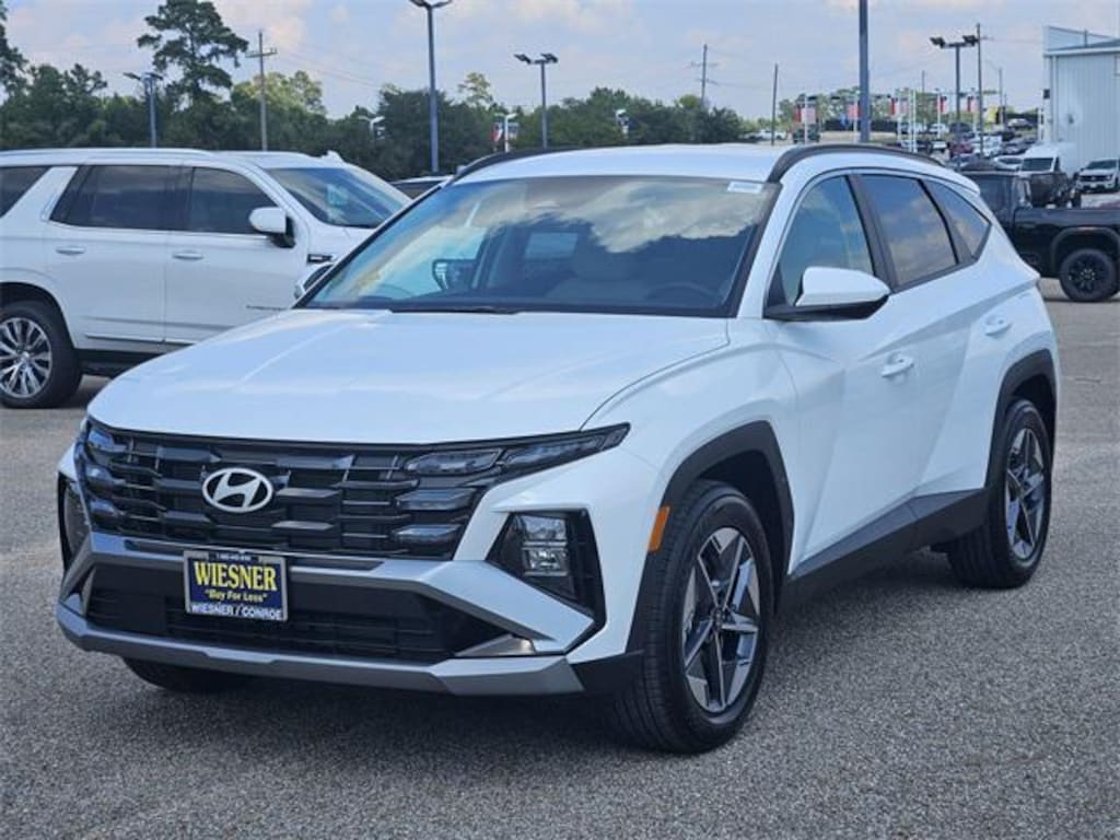 This 2026 Hyundai Tucson SEL in White Pearl comes with the following features: 2.5L I4 DGI DOHC 16V LEV3-SULEV30 187hp 8-Speed Automatic with SHIFTRONIC FWD Option Group 01, 18" x 7.5J Alloy Wheels, 4-Wheel Disc Brakes, 6 Speakers, ABS brakes, Air Conditioning, Alloy wheels, AM/FM radio: SiriusXM, Apple CarPlay & Android Auto, Auto High-beam Headlights, Automatic temperature control, Brake assist, Bumpers: body-color, Cargo Blocks, Cargo Cover, Cargo Net, Cargo Tray, Carpeted Floor Mats, Delay-off headlights, Driver door bin, Driver vanity mirror, Dual front impact airbags, Dual front side impact airbags, Electronic Stability Control, Emergency communication system: Bluelink+, First Aid Kit, Four wheel independent suspension, Front anti-roll bar, Front Bucket Seats, Front Center Armrest, Front dual zone A/C, Front reading lights, Fully automatic headlights, H-Tex Leatherette Seat Trim, Heated door mirrors, Heated Front Bucket Seats, Heated front seats, Illuminated entry, Low tire pressure warning, Occupant sensing airbag, Outside temperature display, Overhead airbag, Overhead console, Panic alarm, Passenger door bin, Passenger vanity mirror, Power door mirrors, Power driver seat, Power Liftgate, Power steering, Power windows, Radio data system, Radio: AM/FM/HD Audio System, Rear anti-roll bar, Rear reading lights, Rear seat center armrest, Rear side impact airbag, Rear window defroster, Rear window wiper, Remote keyless entry, Roof Rack Cross Rails, Security system, Severe Weather Kit, Speed control, Split folding rear seat, Spoiler, Steering wheel mounted audio controls, Tachometer, Telescoping steering wheel, Tilt steering wheel, Traction control, Trip computer, and Variably intermittent wipers. 25/33 City/Highway MPG Price includes: $1500 - Hyundai HMF Dealer Choice : $1500 discount and 5.99% APR for 24 months. $44.32 per $1000 financed. Available to well qualified buyers who finance through Hyundai Motor Finance. H704. Exp. 11/03/2025