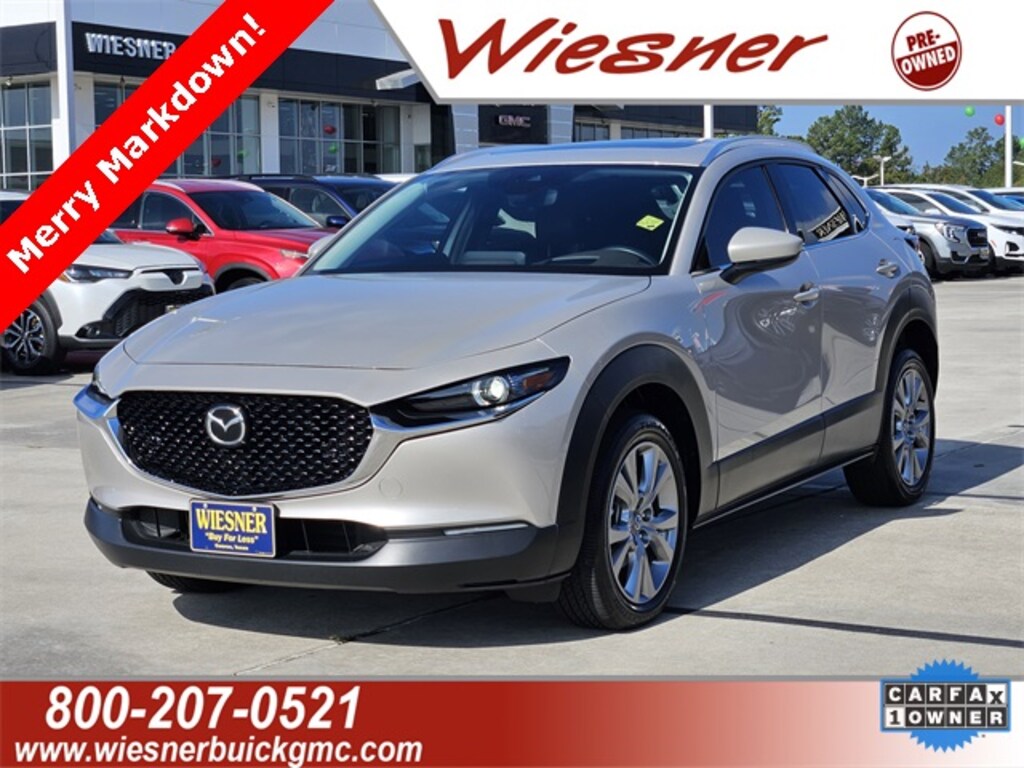 Recent Arrival! New Price! CARFAX One-Owner. Clean CARFAX. Platinum Quartz Metallic 2023 Mazda CX-30 2.5 S Premium Package AWD 6-Speed Automatic SKYACTIV® 2.5L 4-Cylinder DOHC 16V 4-Wheel Disc Brakes, 4.095 Axle Ratio, 8 Speakers, ABS brakes, Air Conditioning, AppLink/Apple CarPlay and Android Auto, Auto High-beam Headlights, Automatic temperature control, Bose Audio Credit, Brake assist, Delay-off headlights, Dual front impact airbags, Dual front side impact airbags, Electronic Stability Control, Emergency communication system: Mazda Connected Services (3-year complimentary trial included), Exterior Parking Camera Rear, Front Bucket Seats, Front Center Armrest, Front dual zone A/C, Fully automatic headlights, Heads-Up Display, Heated Front Bucket Seats, Heated front seats, Leather Seat Trim, Low tire pressure warning, MAZDA CONNECT Infotainment System, Memory seat, Navigation system: MAZDA CONNECT, Occupant sensing airbag, Panic alarm, Power driver seat, Power Liftgate, Power moonroof, Power steering, Power windows, Radio data system, Radio: AM/FM/HD Audio System w/Mazda Navigation, Rain sensing wipers, Rear window defroster, Rear window wiper, Remote keyless entry, Speed control, Speed-sensing steering, Split folding rear seat, Steering wheel mounted audio controls, Traction control, Variably intermittent wipers, Wheels: 18" x 7J Aluminum Alloy.