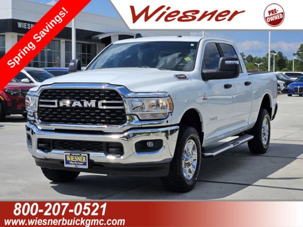 CARFAX One-Owner. Bright White Clearcoat 2024 Ram 2500 Big Horn 4WD 6-Speed Automatic Cummins 6.7L I6 Turbodiesel 2 Way Rear Headrest Seat, 2nd Row In Floor Storage Bins, 3.73 Axle Ratio, 4 Way Front Headrests, 4-Wheel Disc Brakes, 40/20/40 Split Bench Seat, 4G LTE Wi-Fi Hot Spot, 6 Speakers, 8.4" Touchscreen Display, ABS brakes, Active Noise Control System, Air Conditioning, Apple CarPlay, Auto Power-Folding Mirrors, Big Horn IP Badge, Black Exterior Mirrors, Bluetooth Handsfree Phone & Audio, Brake assist, Bumpers: chrome, Center Hub, Connectivity - US/Canada, Delay-off headlights, Dual front impact airbags, Dual front side impact airbags, Dual Glove Boxes, Electronic Stability Control, Emergency communication system: SiriusXM Guardian, Exterior Mirrors Courtesy Lamps, Exterior Mirrors w/Heating Element, Exterior Mirrors w/Supplemental Signals, Foam Bottle Insert (Door Trim Panel), Footwell Courtesy Lamp, For Details, Visit DriveUconnect.com, For More Info, Call 800-643-2112, Forward & Reverse Utility Lights, Front Armrest w/Cupholders, Front Center Seat Cushion Storage, Front Fog Lamps, Front Seat Back Map Pockets, Fully automatic headlights, Global Telematics Box Module (TBM), Glove Box Lamp, Google Android Auto, GPS Antenna Input, Heated door mirrors, Integrated Center Stack Radio, Integrated Voice Command w/Bluetooth, Leather Wrapped Steering Wheel, Level 1 Equipment Group, Locking Lower Glove Box, Low tire pressure warning, Manual Adjust 4-Way Front Passenger Seat, Mirror Running Lights, Occupant sensing airbag, Panic alarm, ParkView Rear Back-Up Camera, Passenger vanity mirror, Power 2-Way Driver Lumbar Adjust, Power Adjust 8-Way Driver Seat, Power Adjust Mirrors, Power Adjustable Convex Aux Mirrors, Power door mirrors, Power Heated Fold Telescope Mirrors, Power steering, Power Telescoping Mirrors, Power windows, Premium Cloth 40/20/40 Bench Seat, Quick Order Package 2GZ Big Horn, Quick Order Package 2HZ Big Horn, Radio: Uconnect 5 W w/8.4" Display, Radio: Uconnect 5 W w/8.4" Display (A62), Rear 60/40 Folding Seat, Rear Dome w/On/Off Switch Lamp, Rear Folding Seat, Rear step bumper, Remote keyless entry, Remote USB Port - Charge Only, Selectable Tire Fill Alert, SiriusXM Radio Service, SiriusXM Satellite Radio, Speed control, Steering Wheel Mounted Audio Controls, Storage Tray, Tip Start, Traction control, Turn signal indicator mirrors, Wheels: 18" x 8.0" Polished Aluminum.