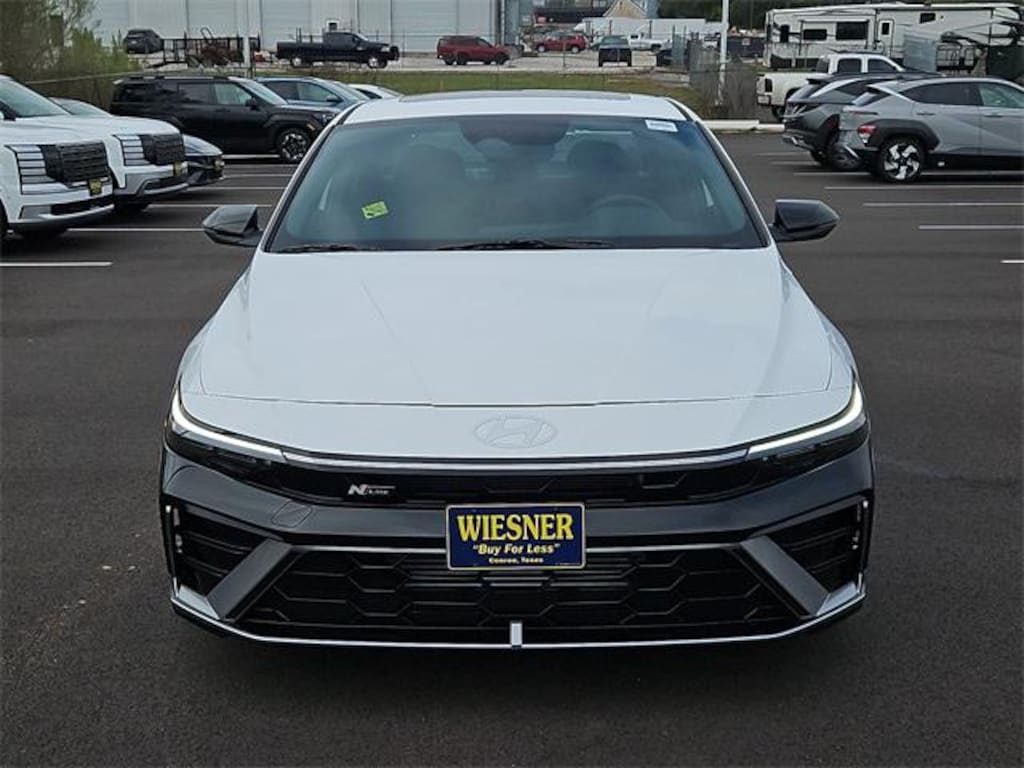 This 2026 Hyundai Elantra N Line in Atlas White comes with the following features: I4 7-Speed Dual Clutch DCT FWD Option Group 01, 18" x 7.5J Alloy Wheels, 4-Wheel Disc Brakes, 8 Speakers, ABS brakes, Air Conditioning, Alloy wheels, AM/FM radio: SiriusXM, Apple CarPlay & Android Auto, Auto High-beam Headlights, Automatic temperature control, Brake assist, Bumpers: body-color, Cargo Net, Cargo Tray, Carpeted Floor Mats, Combination Cloth and Leatherette Seating Surfaces, Delay-off headlights, Driver door bin, Driver vanity mirror, Dual front impact airbags, Dual front side impact airbags, Electronic Stability Control, Emergency communication system: None, Exterior Parking Camera Rear, First Aid Kit, Four wheel independent suspension, Front anti-roll bar, Front Bucket Seats, Front Center Armrest, Front dual zone A/C, Front reading lights, Fully automatic headlights, Heated door mirrors, Heated front seats, Heated Front Sport Bucket Seats, Illuminated entry, Leather Shift Knob, Leather steering wheel, Low tire pressure warning, Navigation System, Occupant sensing airbag, Outside temperature display, Overhead airbag, Overhead console, Panic alarm, Passenger door bin, Passenger vanity mirror, Power door mirrors, Power driver seat, Power moonroof, Power steering, Power windows, Radio: AM/FM/HD/SiriusXM Display Audio, Rear anti-roll bar, Rear seat center armrest, Rear side impact airbag, Rear window defroster, Remote keyless entry, Security system, Speed control, Speed-sensing steering, Split folding rear seat, Spoiler, Sport steering wheel, Steering wheel mounted audio controls, Tachometer, Telescoping steering wheel, Tilt steering wheel, Traction control, Trip computer, Turn signal indicator mirrors, and Variably intermittent wipers. 28/35 City/Highway MPG Price includes: $500 - Hyundai HMF Dealer Choice : $500 discount and 5.39% APR for 24 months. $44.05 per $1000 financed. Available to well qualified buyers who finance through Hyundai Motor Finance. H704. Exp. 02/02/2026